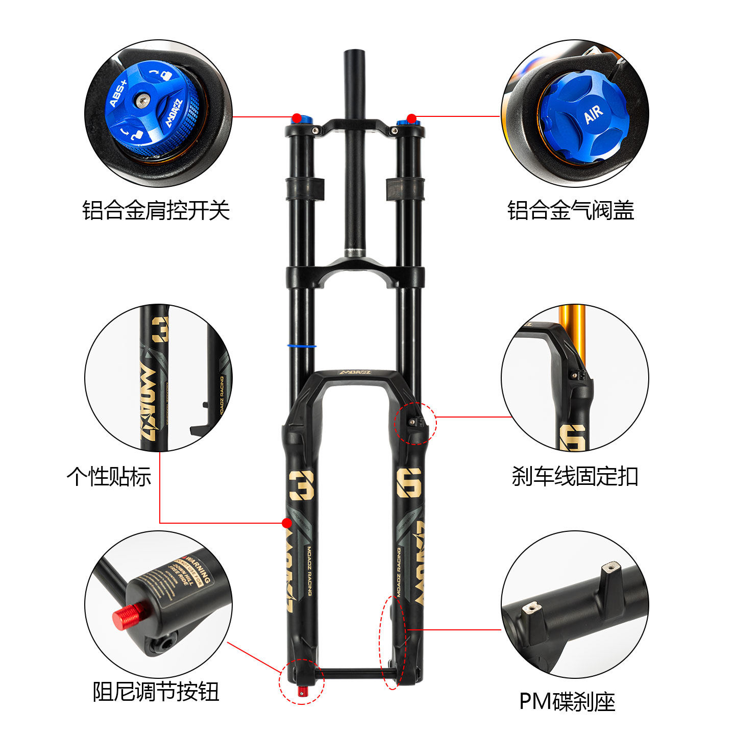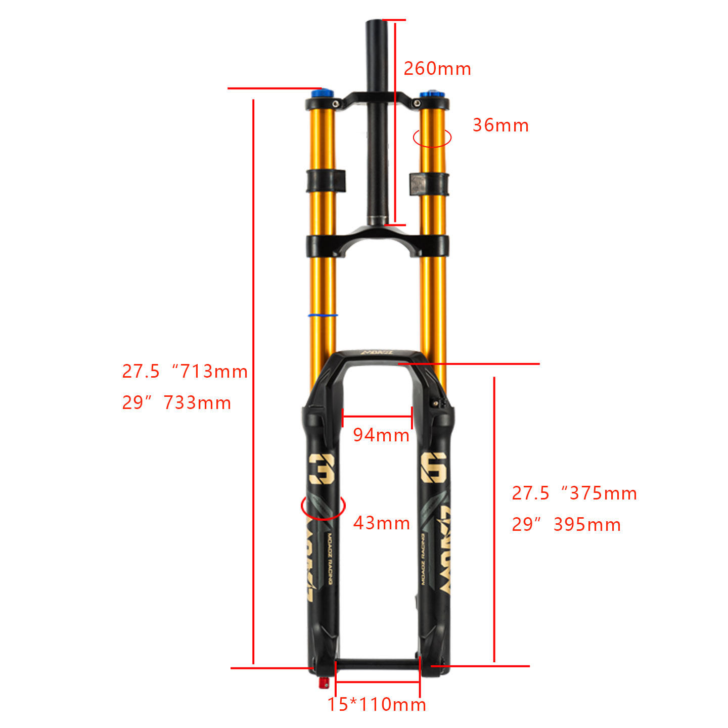 正品玛卡威山地自行车前叉双肩27.5寸内管36行程180冲山阻尼调节
