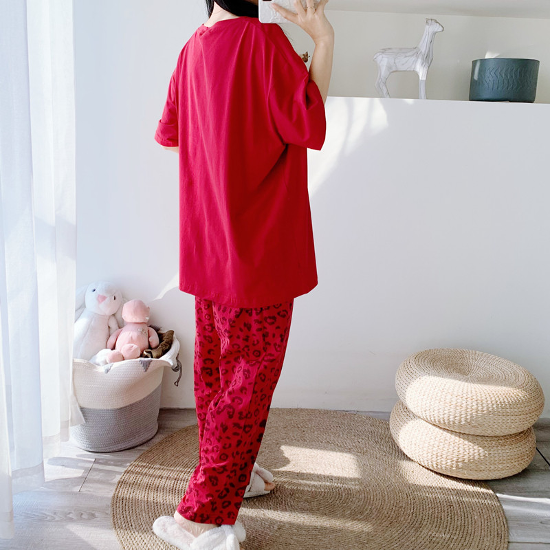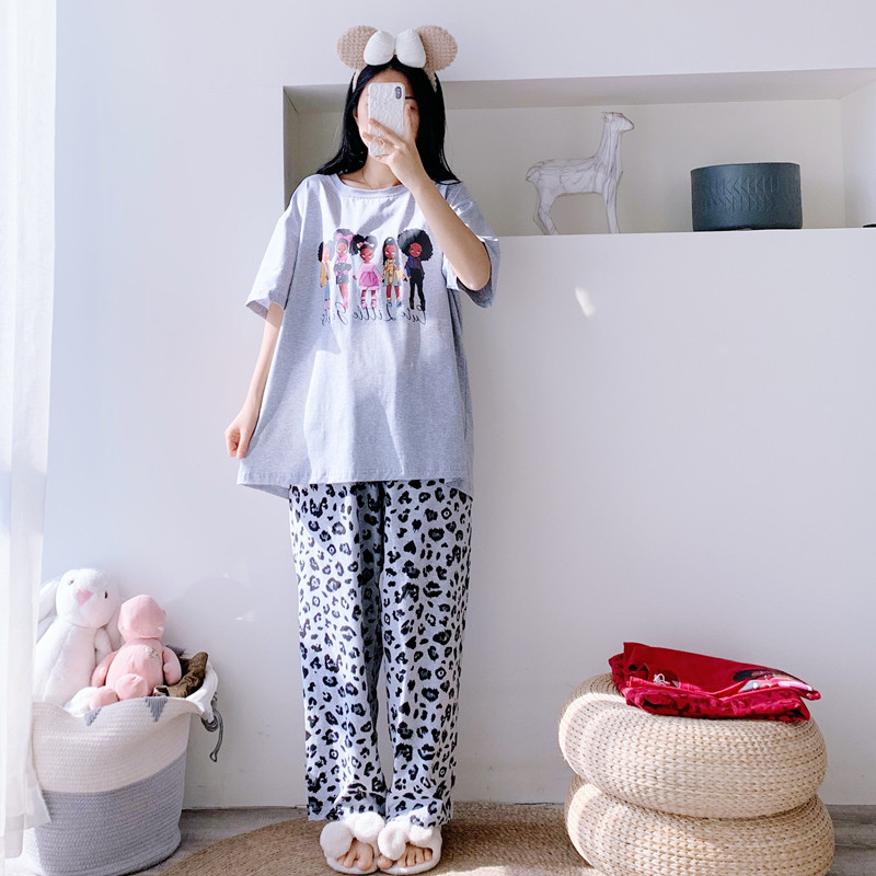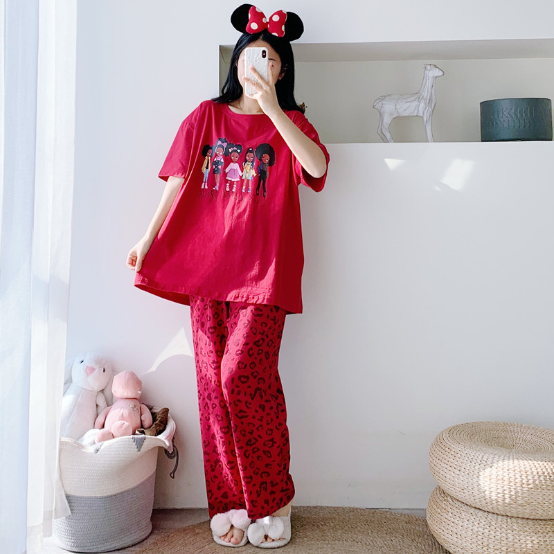 男女纯棉卡通短袖长裤睡衣家居服