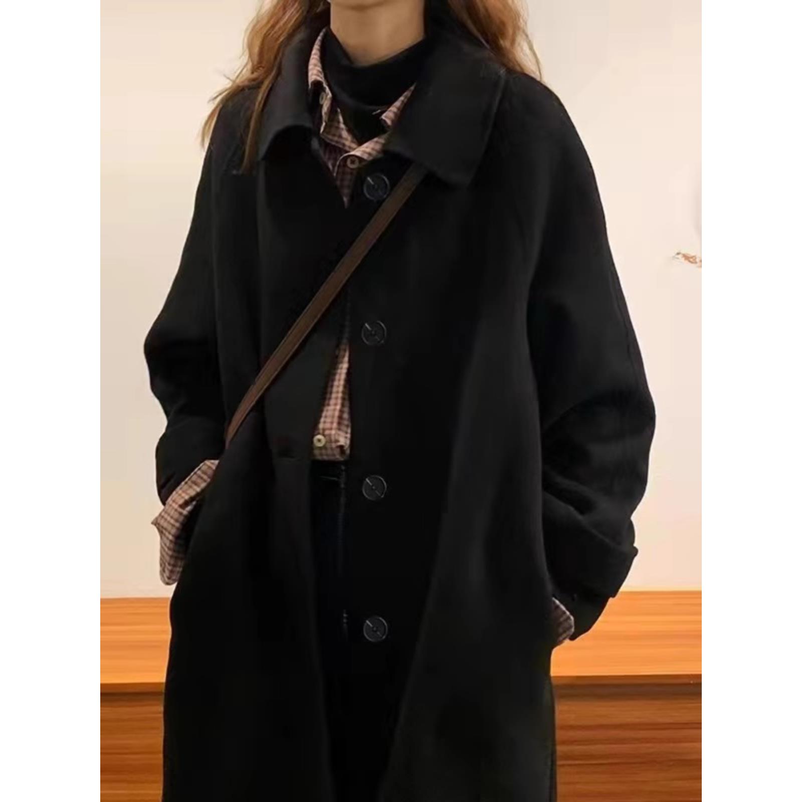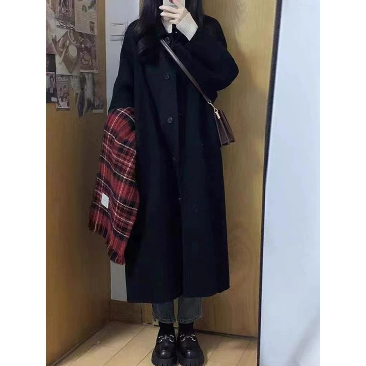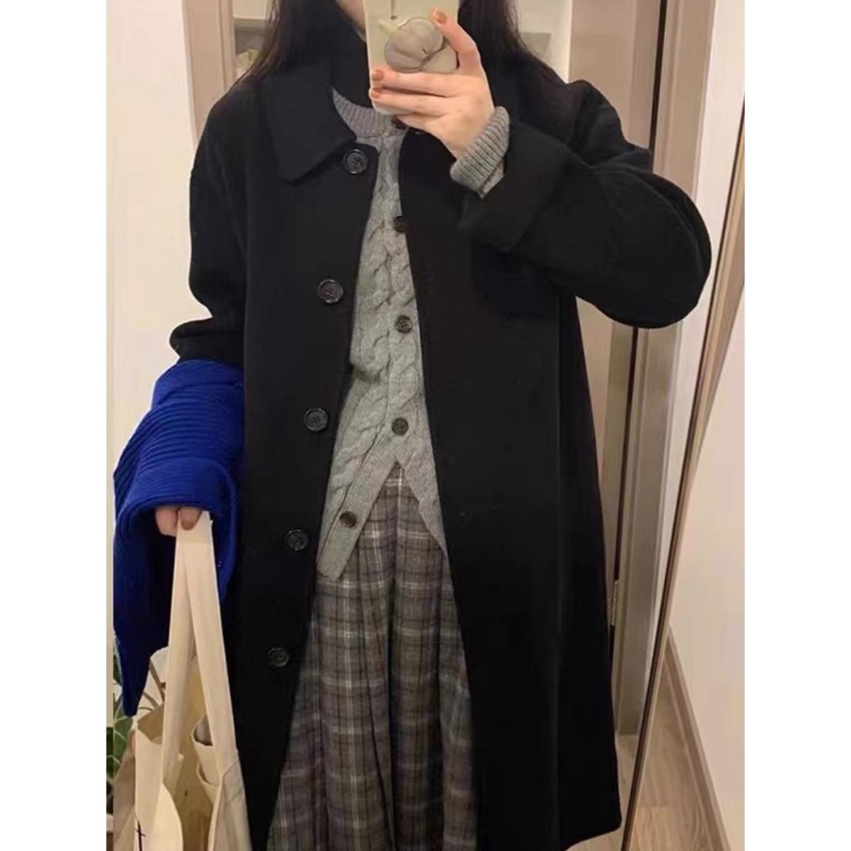 黑色双面羊绒大衣女毛呢外套2024秋冬季新款小个子高级感羊毛外套