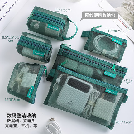 大容量复古彩色收纳包网纱简约拉链随身袋旅行迷你便携零钱包数据线耳机手机配件化妆包钥匙U盘U盾卡包证件袋