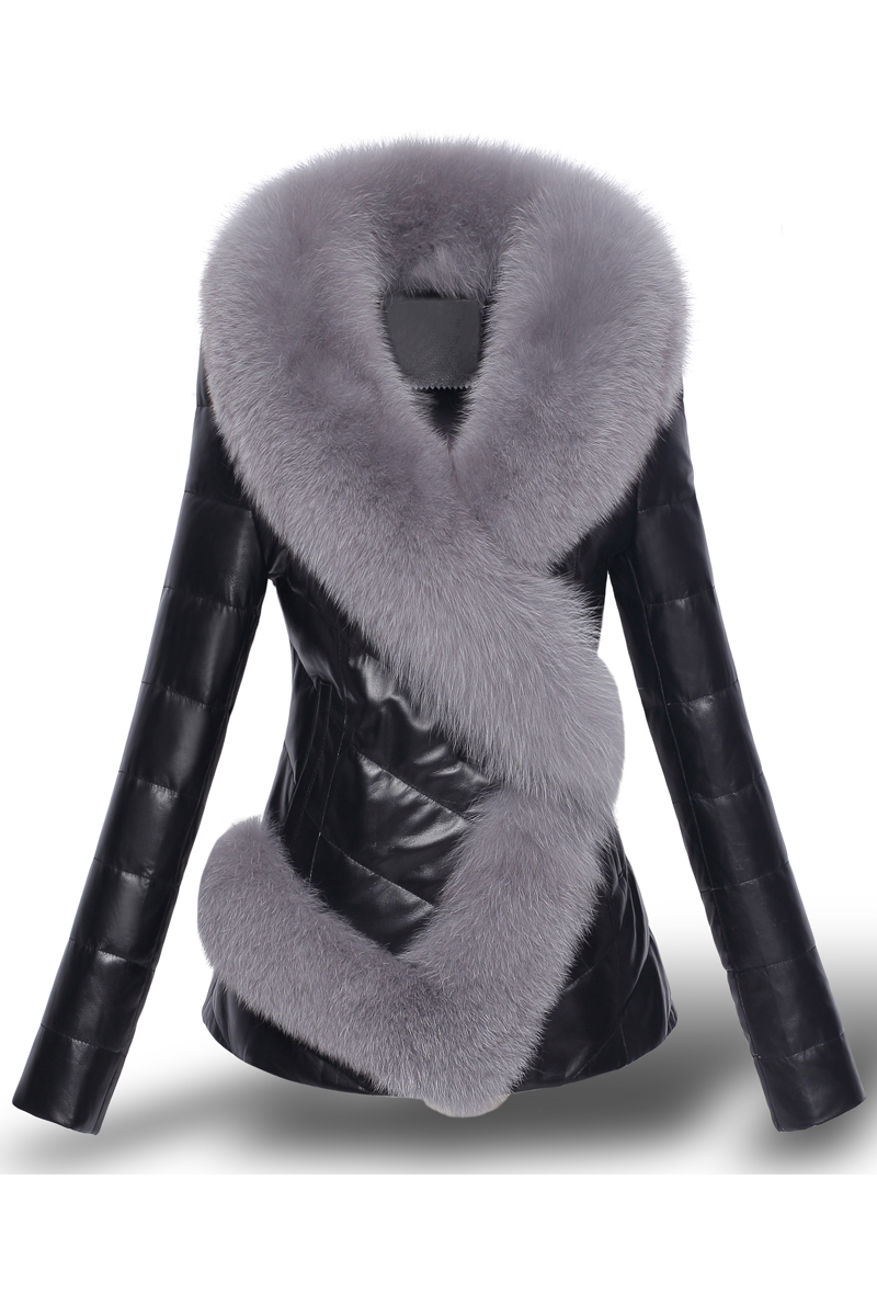 反季特价皮衣加厚羽绒棉服女仿狐狸毛领短款修身皮草拼接外套冬装