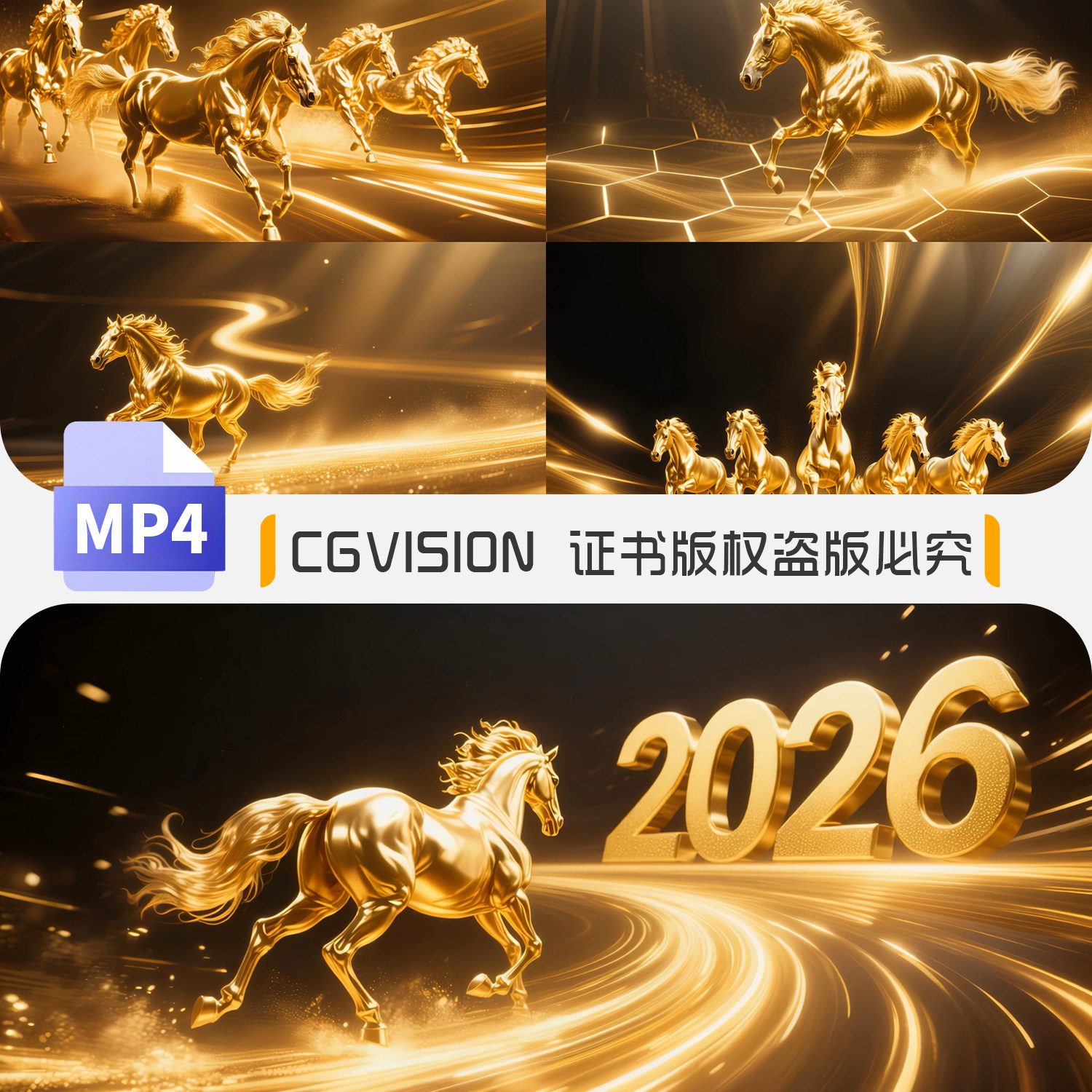 2026马年年会金马奔跑马群奔腾特效粒子大屏背景晚会开场视频素材
