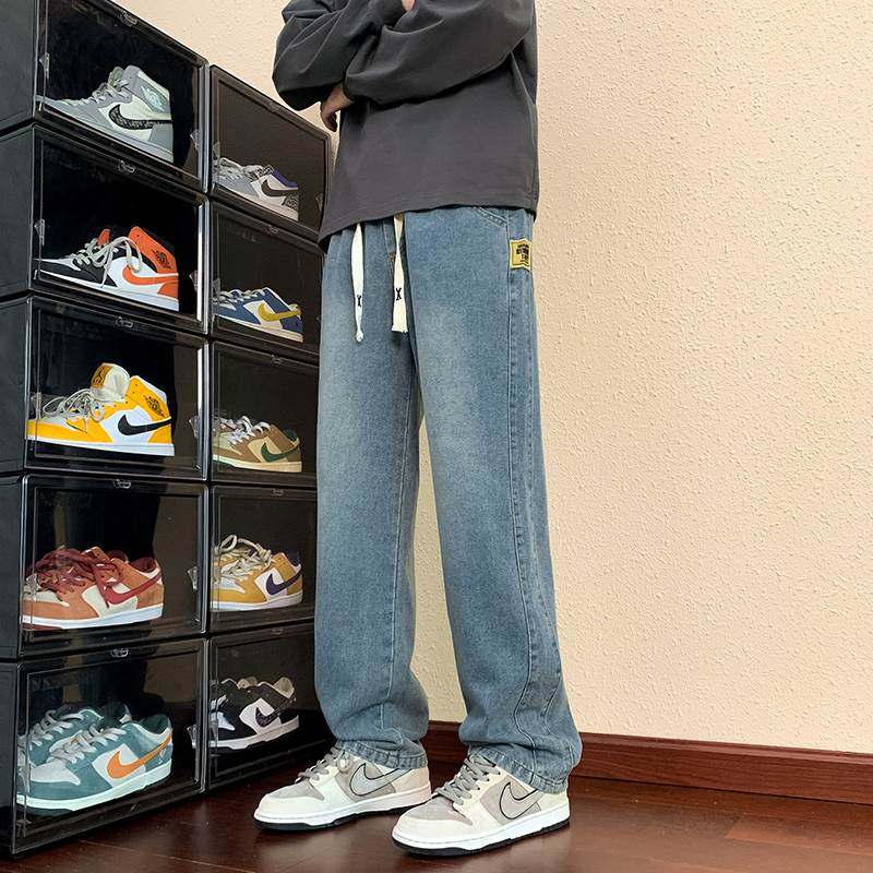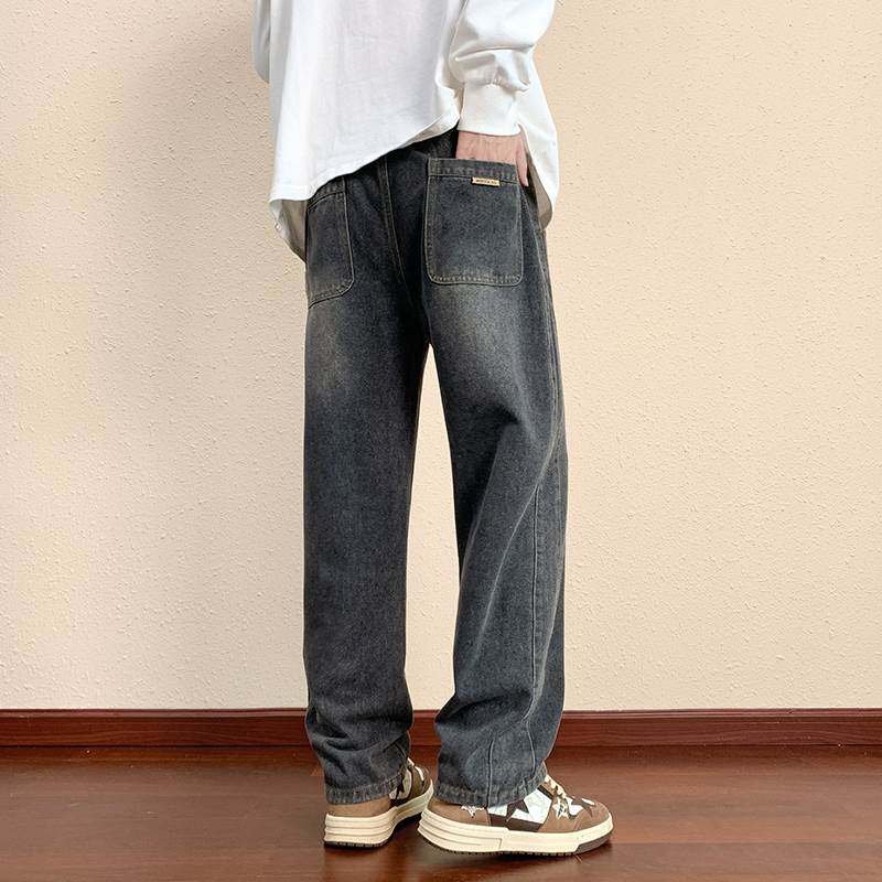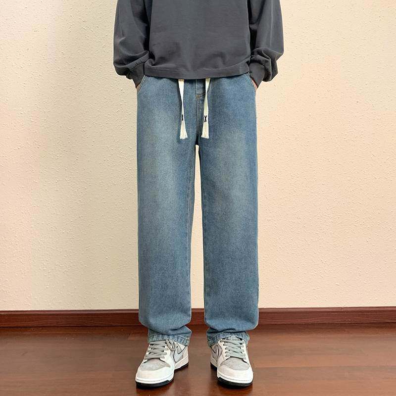 牛仔裤男秋冬款加绒直筒宽松大童休闲厚长裤初高中学生青少年裤子