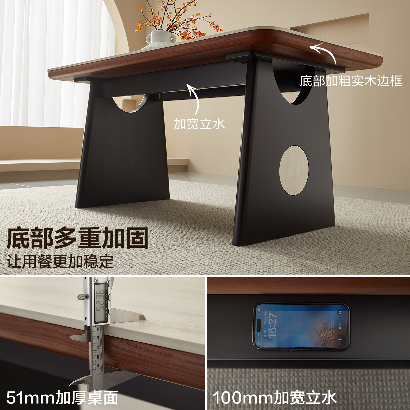 全友家居中古风洞石岩板餐桌复古风客厅家用饭桌椅组合2025新款