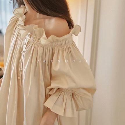 Girlish|法式复古仙女睡裙长裙春夏季纯棉宫廷风公主一字肩家居服