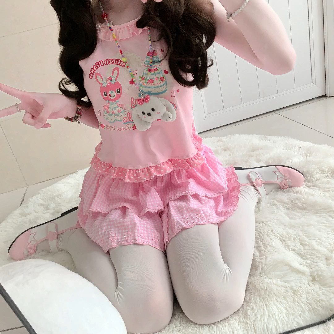 RichGirl少女原创复刻兔兔背心可爱吊带粉冰淇淋刺绣蛋糕裙