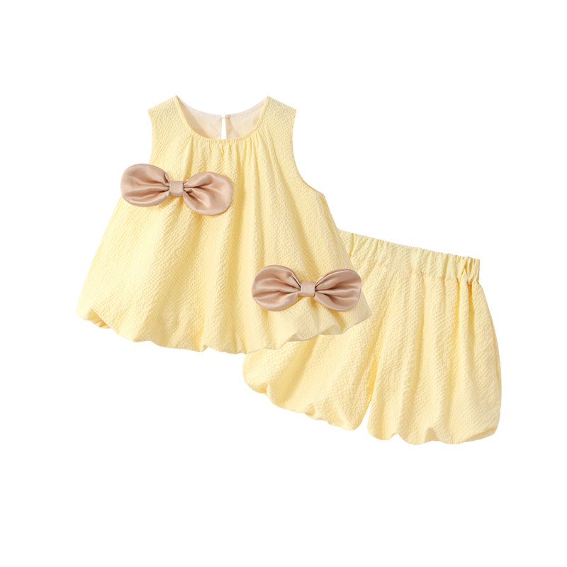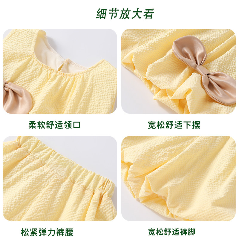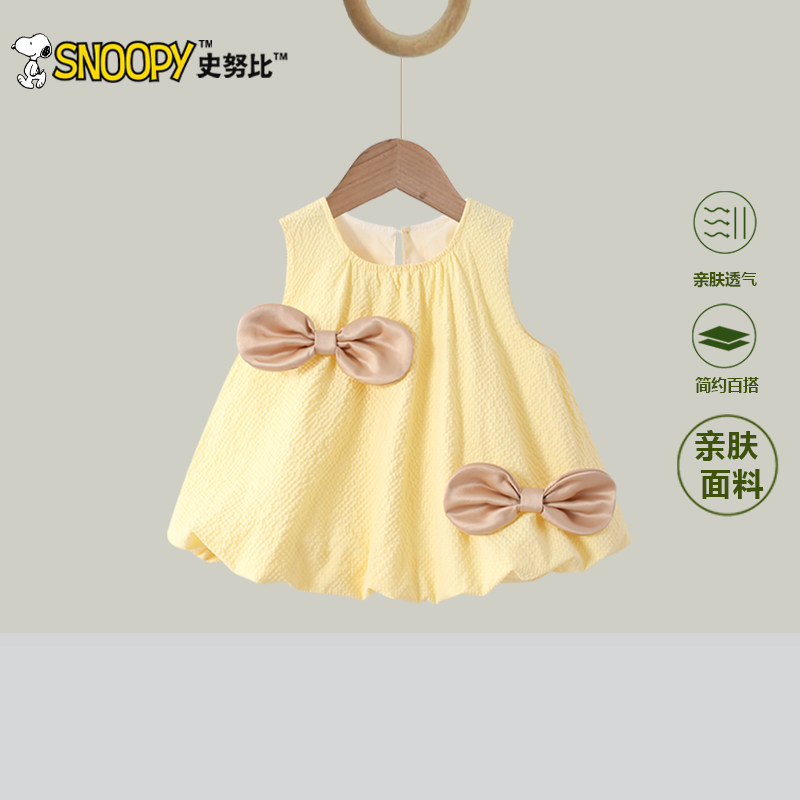 史努比女童夏季套装2025新款洋气儿童时髦蝴蝶结背心短裤两件套