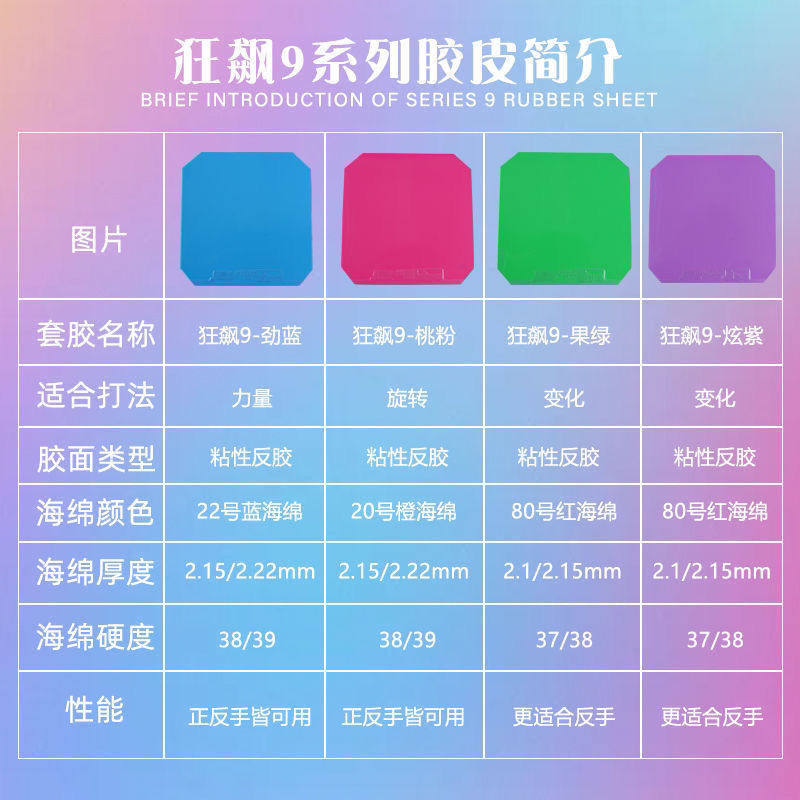 狂飙9乒乓球彩色套胶乒乓球胶皮红双喜半涩性反胶