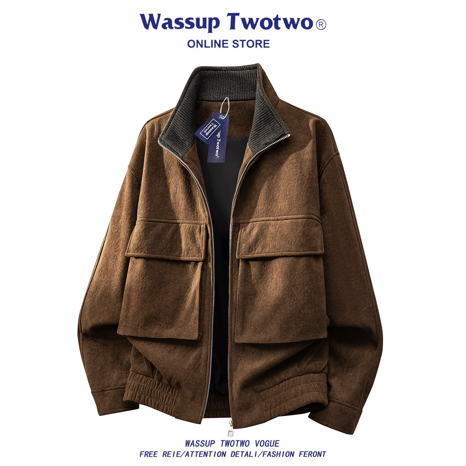 WASSUP TWO TWO美式加绒夹克男款秋冬季新款加厚宽松情侣皮衣外套