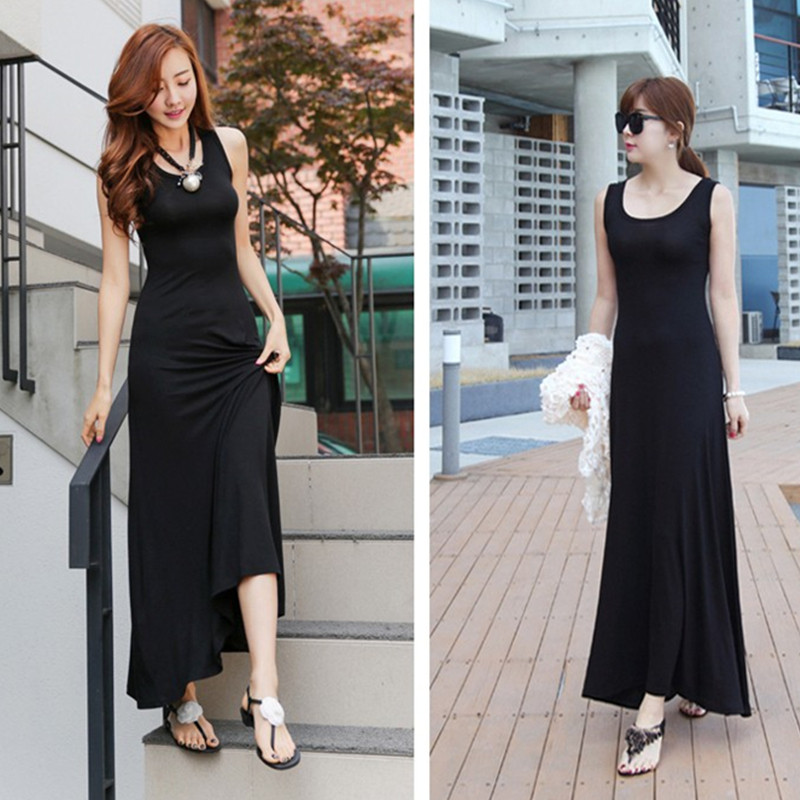 夏季薄款莫代尔长裙女宽松黑色百搭连衣裙吊带打底背心裙无袖大码