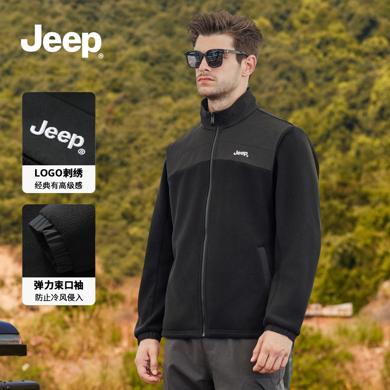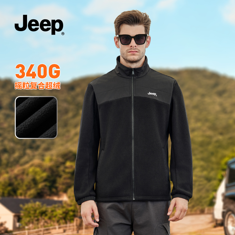 Jeep吉普官方夹克外套男士秋冬季2025新款潮流户外休闲加厚抓绒衣