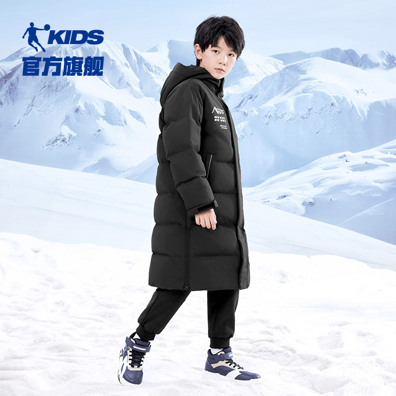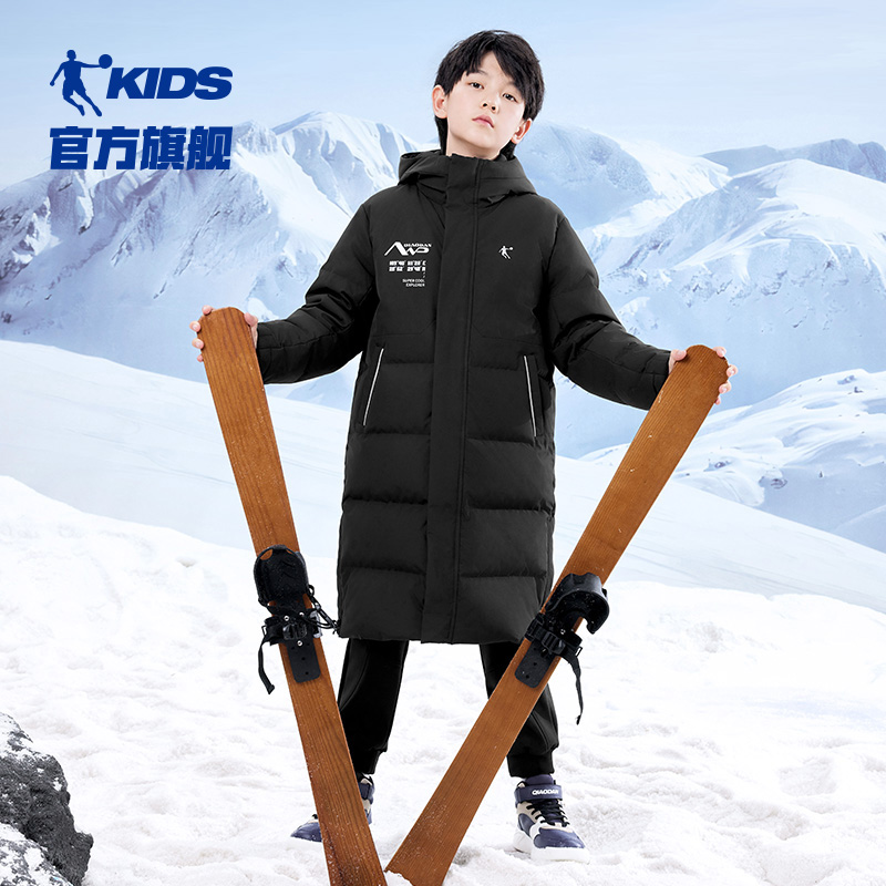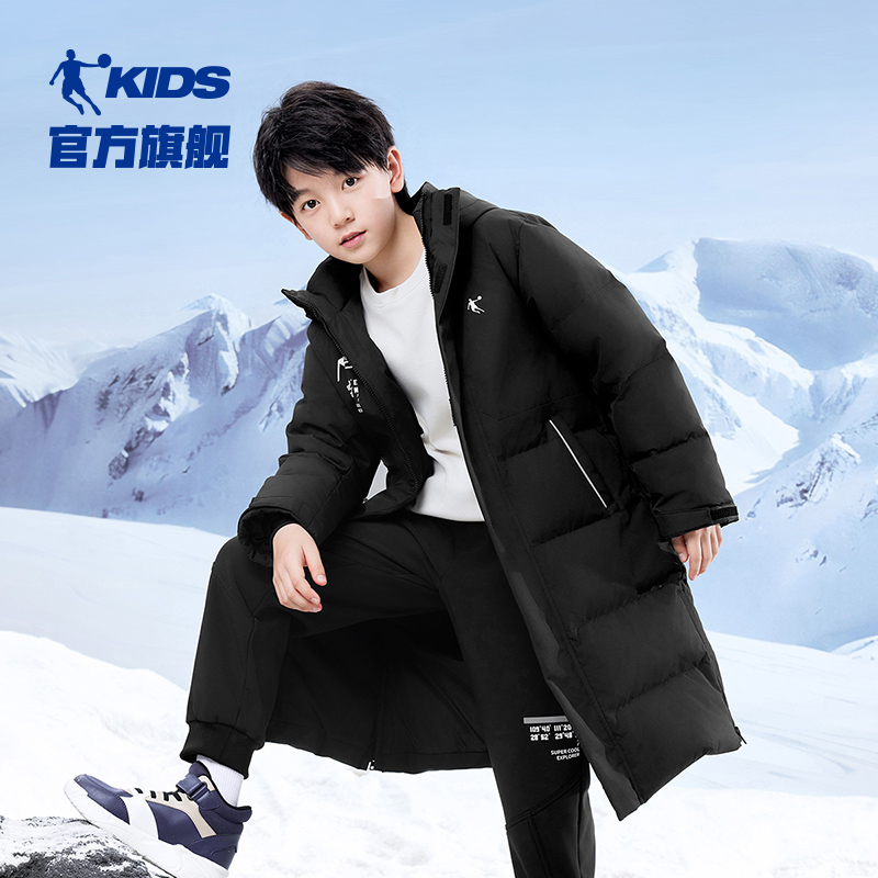 商场同款乔丹童装男童羽绒服长款2025冬新款抗寒保暖男孩连帽外套