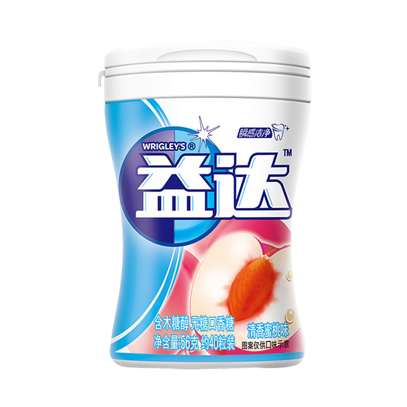 益达口香糖木糖醇56g瓶约40粒瓶装蜜桃味口气清新【日常团】