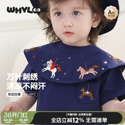 WHYLOOK 婴儿口水巾防吐奶巾防水刺绣围兜宝宝围嘴马年原创新款