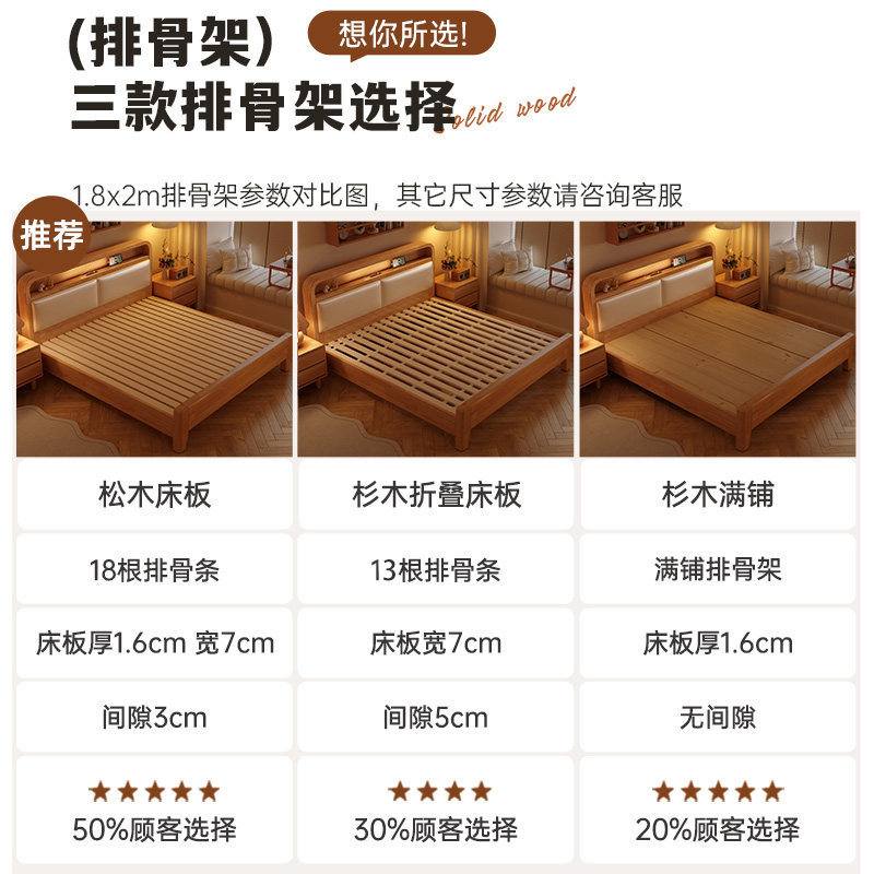 馨佰利实木床奶油风可储物双人床