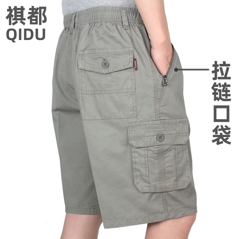 纯棉多口袋中老年男士短裤爸爸宽松大码松紧腰五分裤夏季休闲裤薄