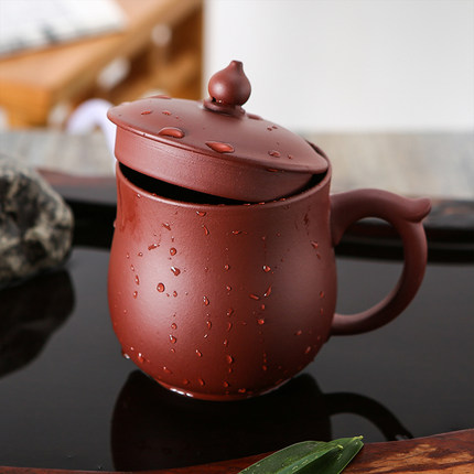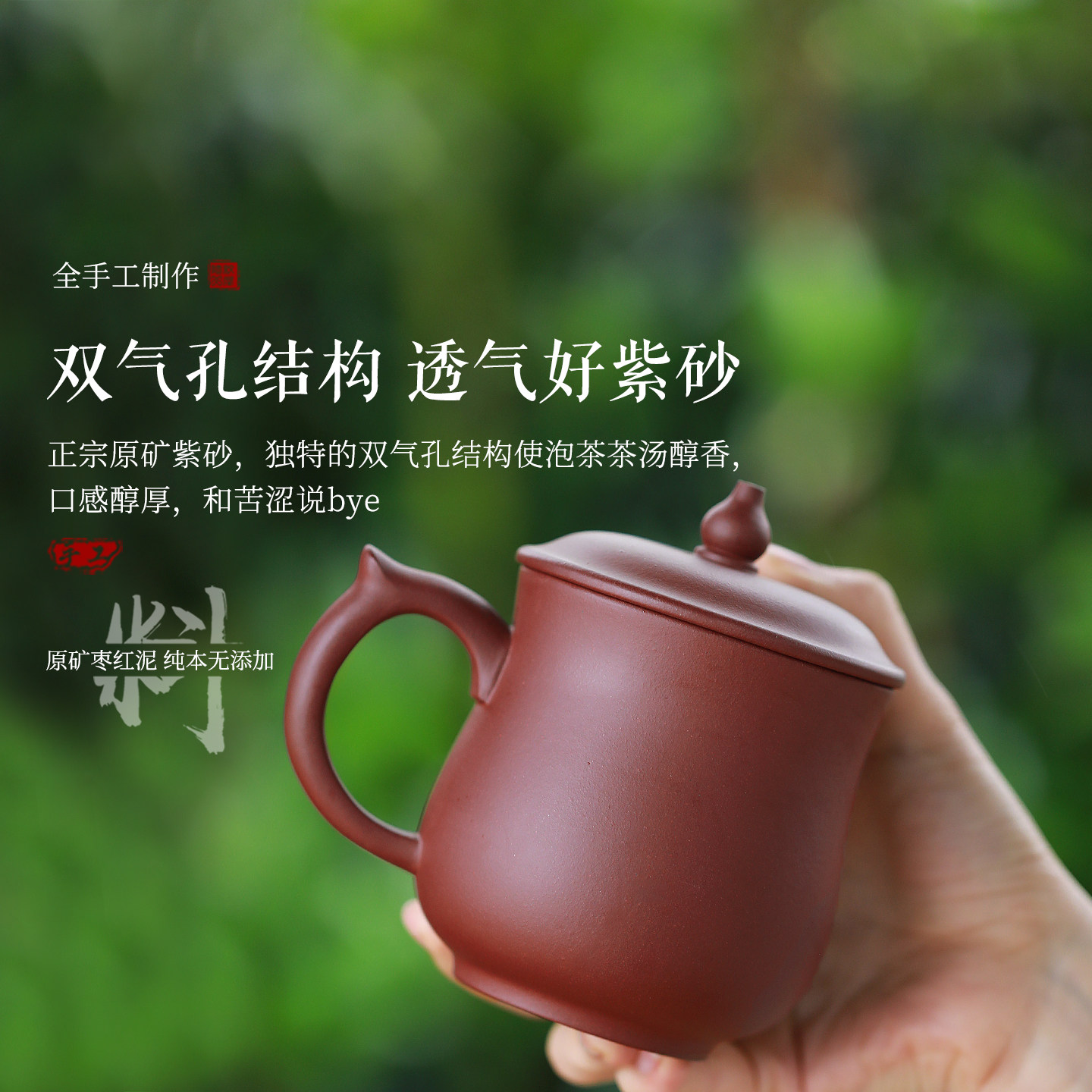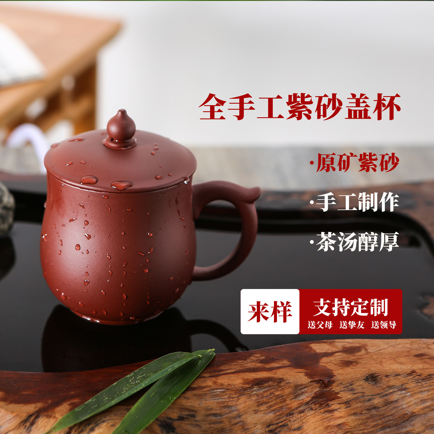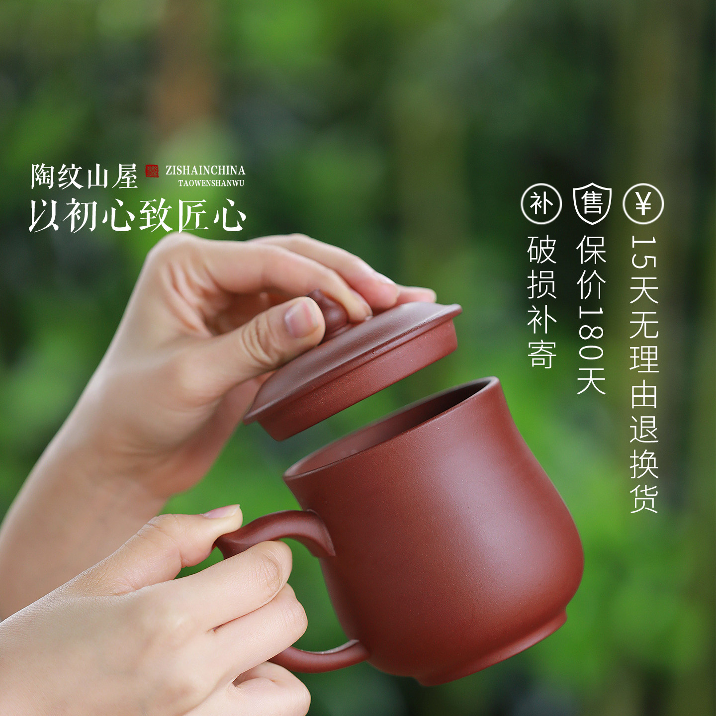 陶纹山屋 全手工紫砂杯名家带盖杯子 宜兴原矿定制刻字泡茶茶杯