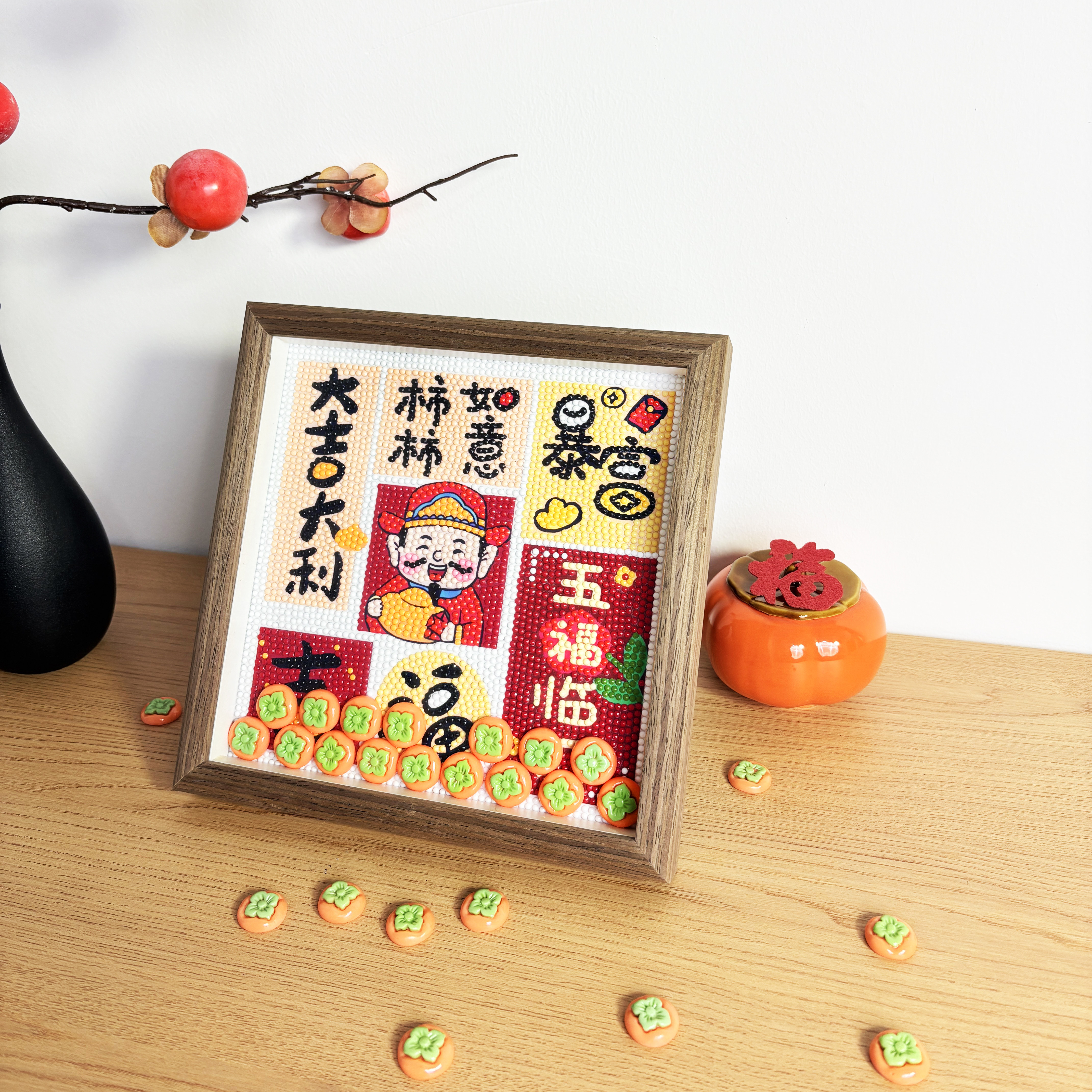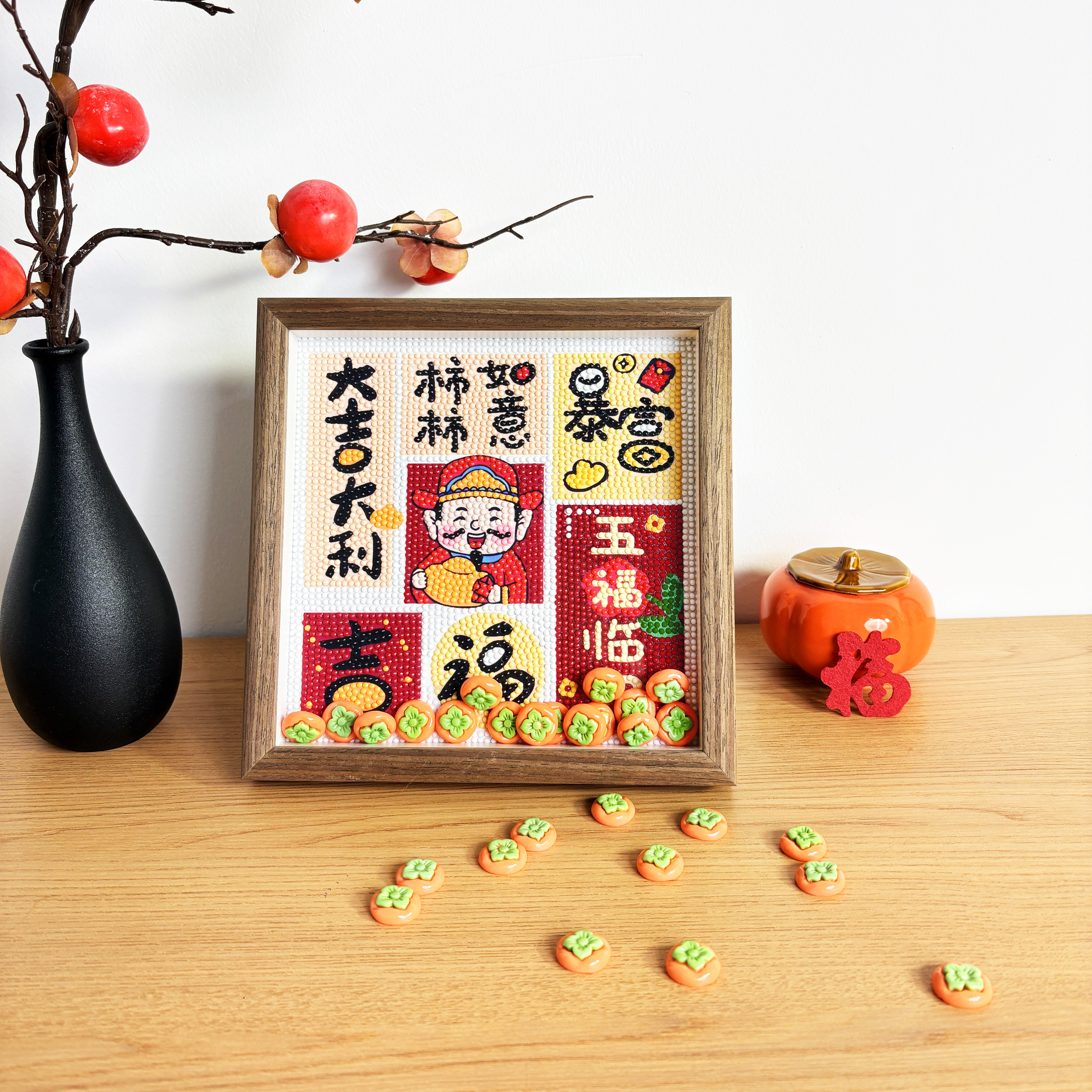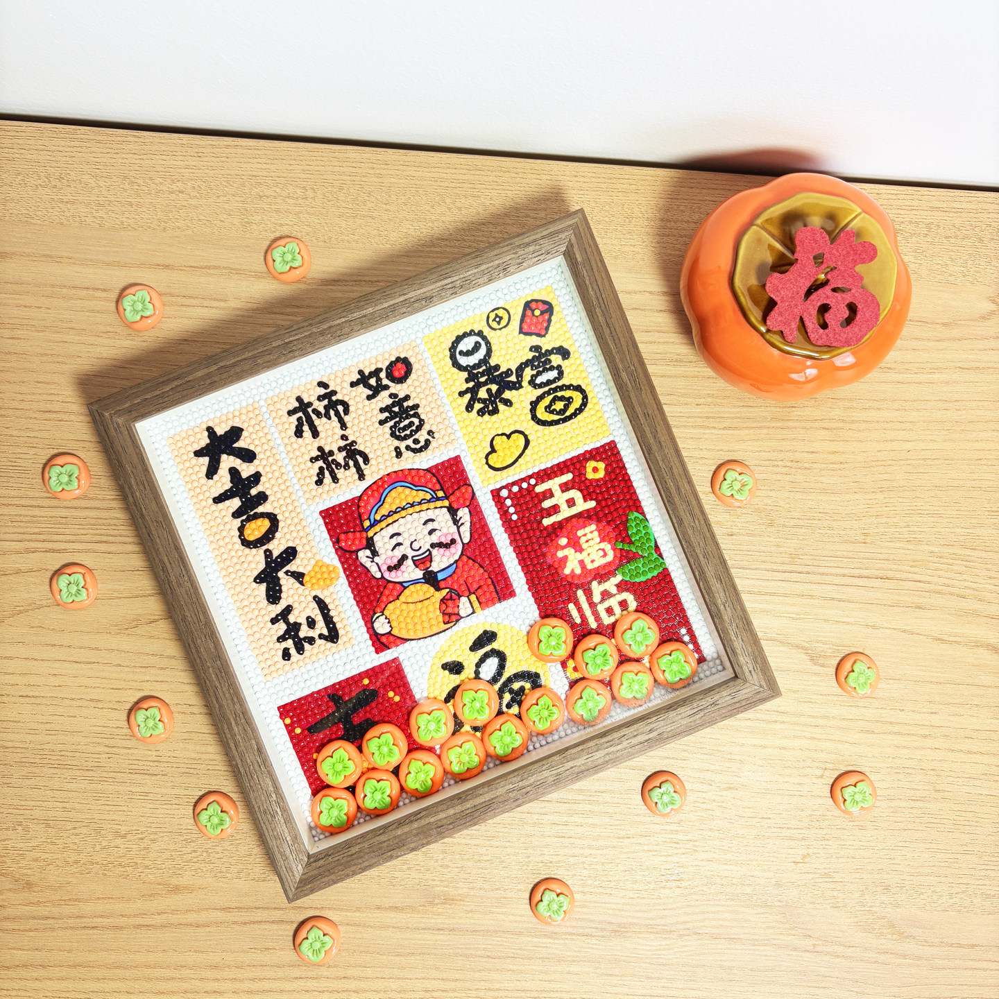 财神爷带框钻石画2026新款高级感福字十字绣满钻五福临门砖石贴画