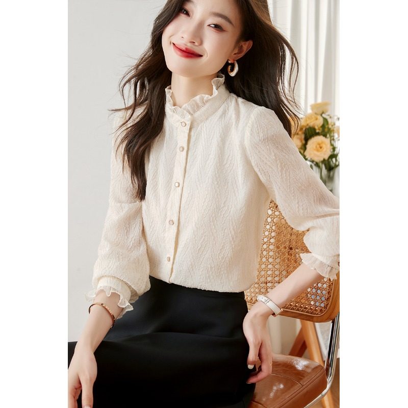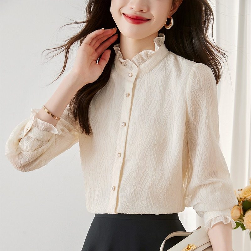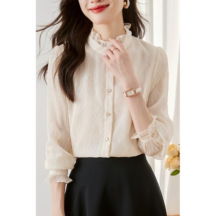 雪纺衬衫女士秋装2025年新款法式木耳边立领衬衣别致漂亮内搭小衫