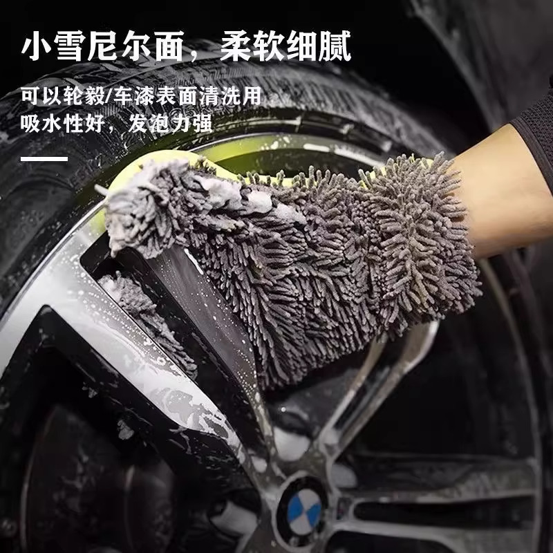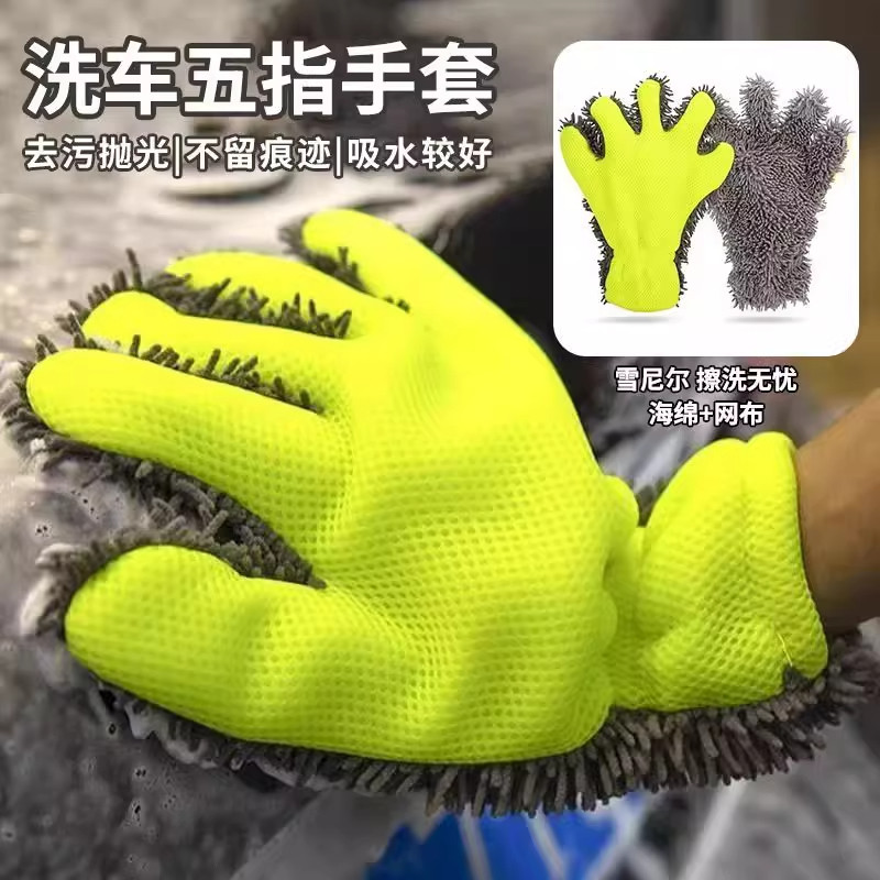 车漆海绵轮毂清洗不伤擦车加厚美容洗车毛绒手套五指毛绒绒雪尼尔