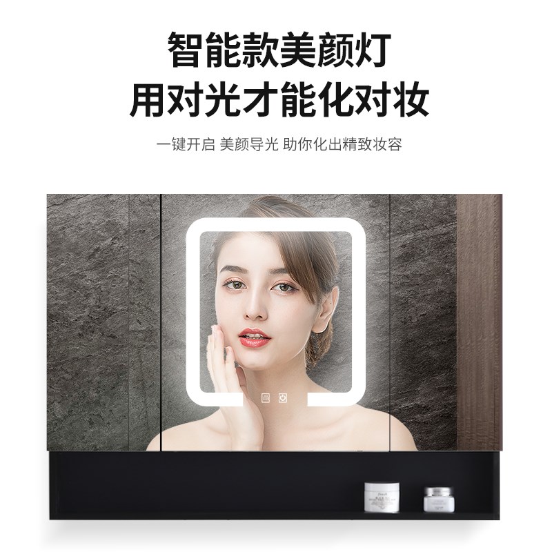 太空铝智能浴室镜柜组合挂墙式带灯防雾卫生间镜柜厕所带置物架镜