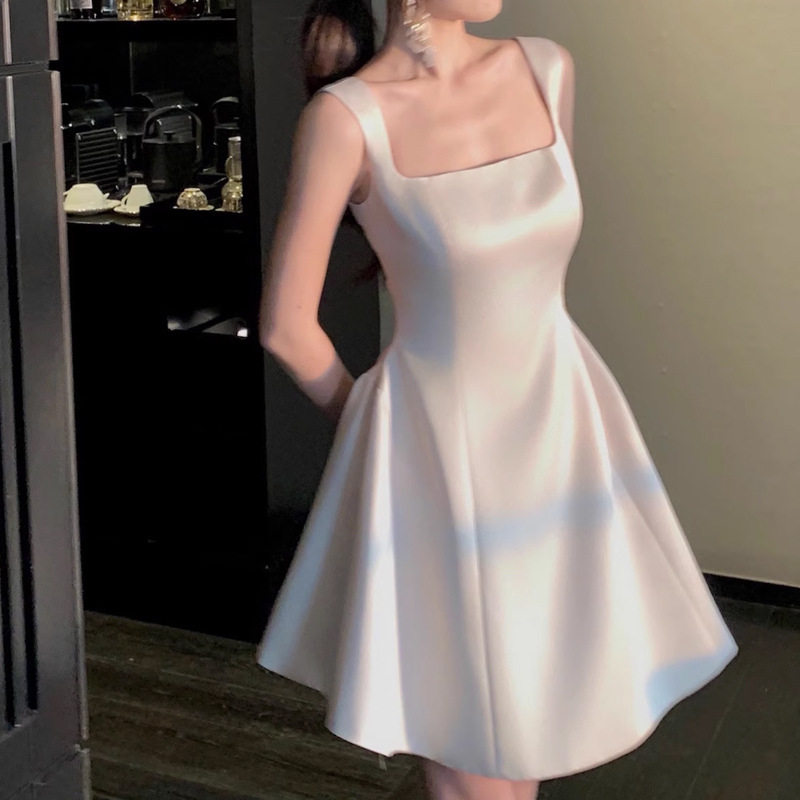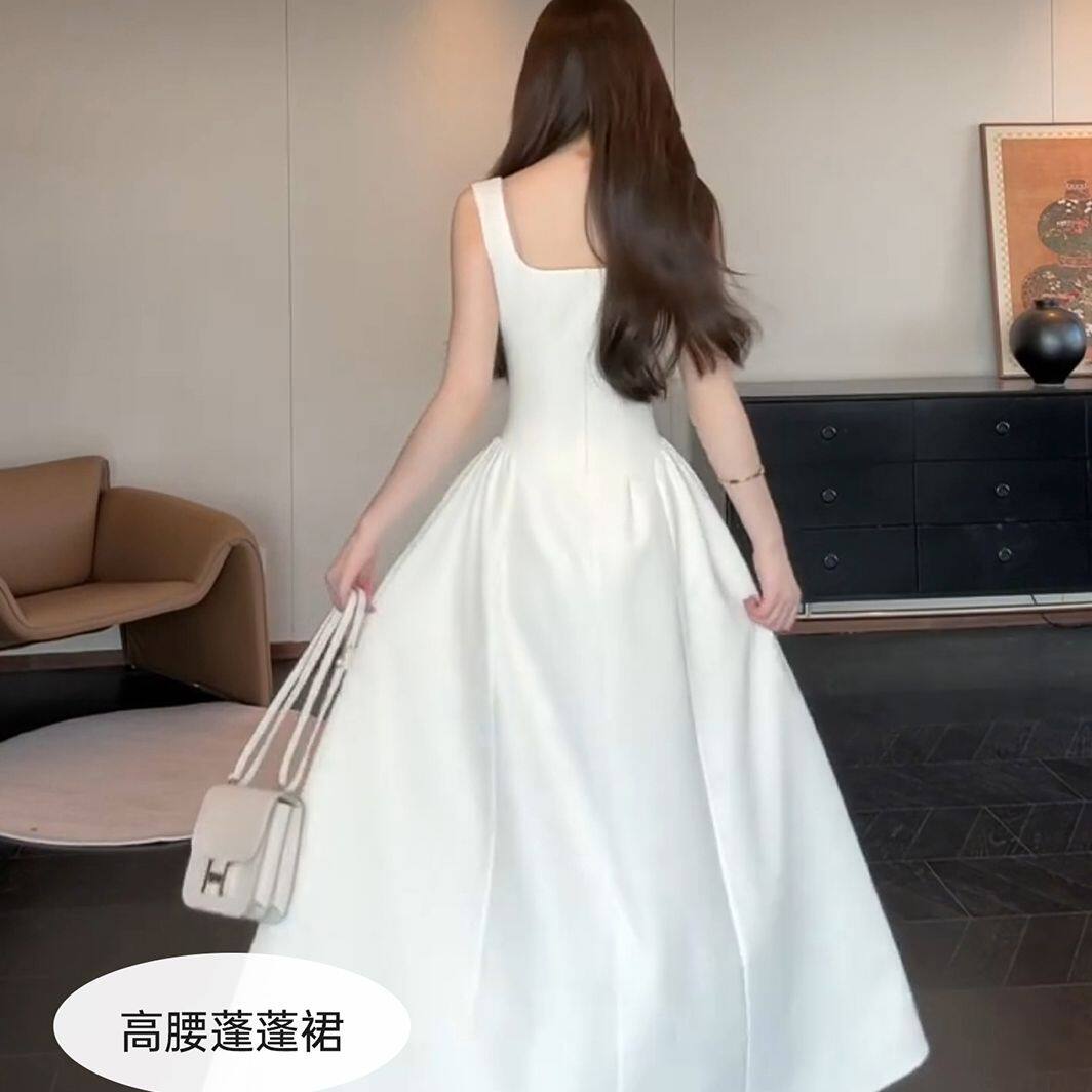 白色吊带连衣裙女冬季配大衣内搭修身显瘦收腰a字巨好看长款裙子