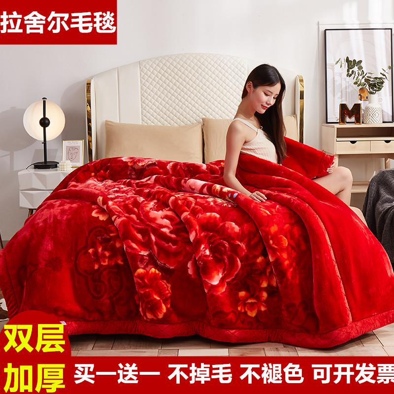 毛毯冬季加厚双层拉舍尔盖毯被子学生宿舍单人双人结婚大红绒毯子