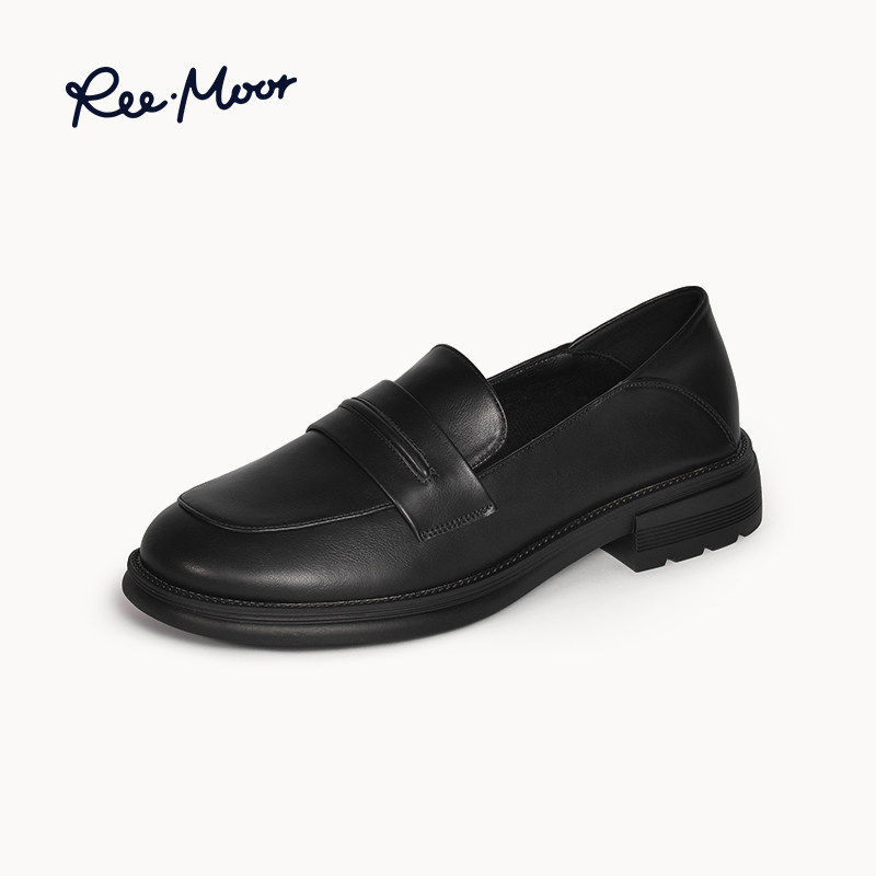 reemoor睿慕超轻黑色浅口乐福鞋女英伦风小皮鞋休闲女鞋软底单鞋