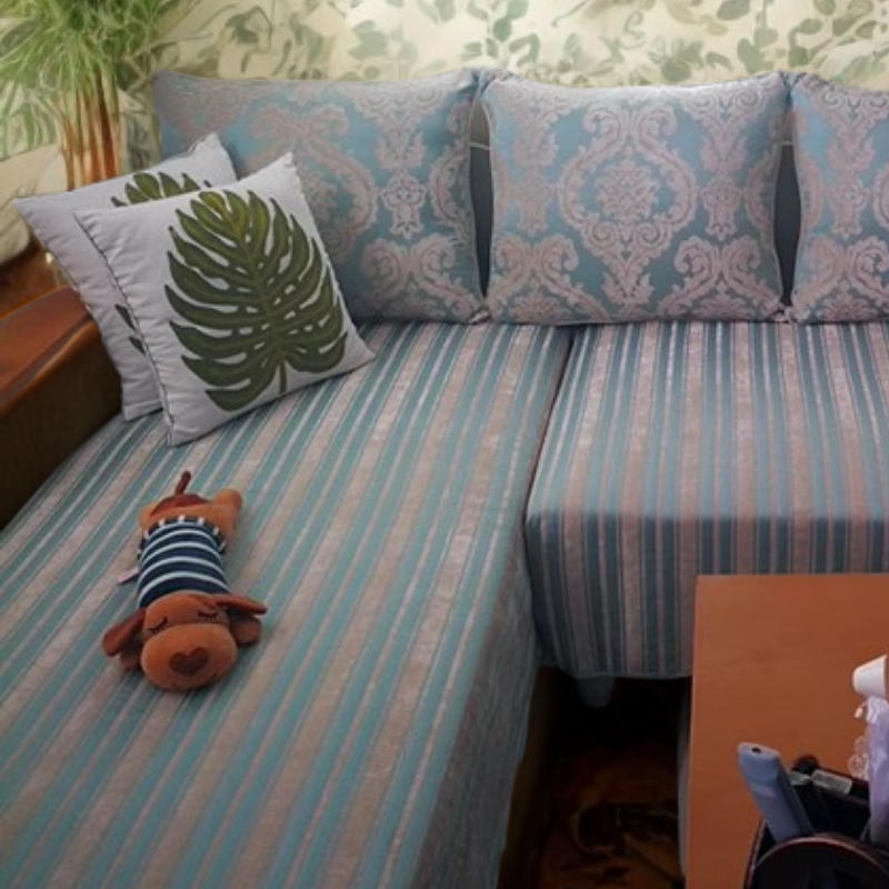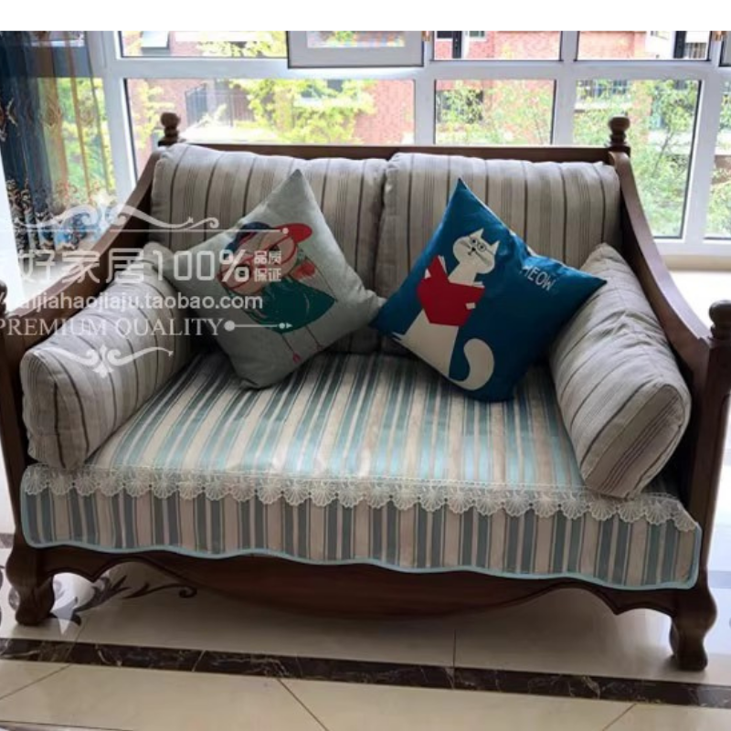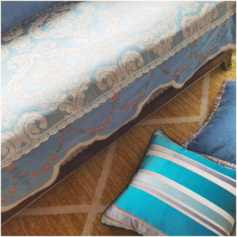 北欧沙发垫四季通用简约条美式沙发巾防滑地中海蓝靠背巾欧式定制