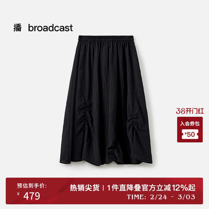 播商场同款黑色气质半身裙女夏季新款梨形显瘦百褶裙BDS7BD2963