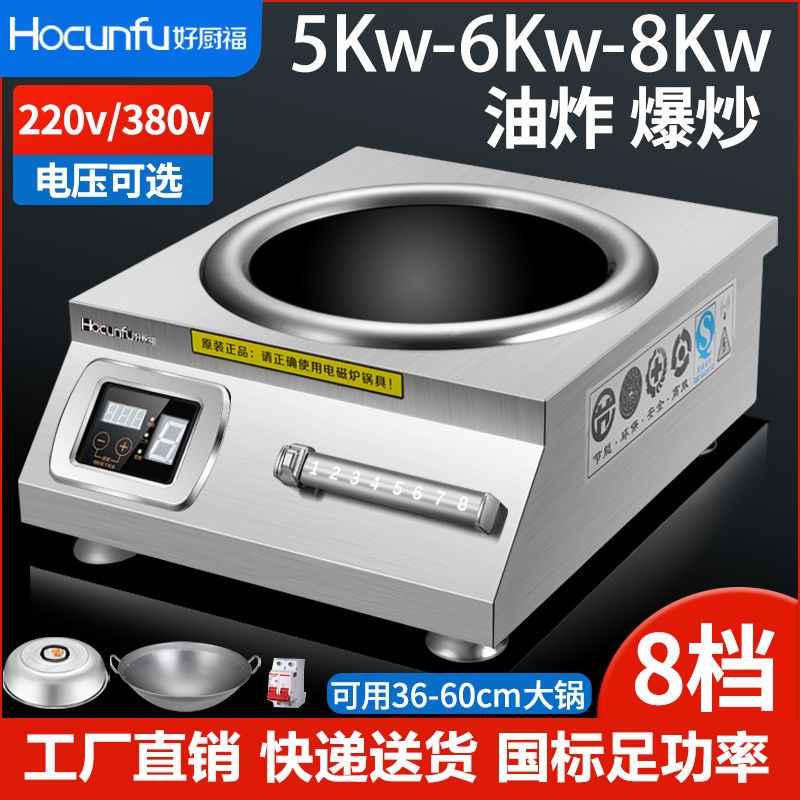 商用电磁炉5f000W凹面大功率6000W瓦商业电炒炉爆炒饭店食堂大锅