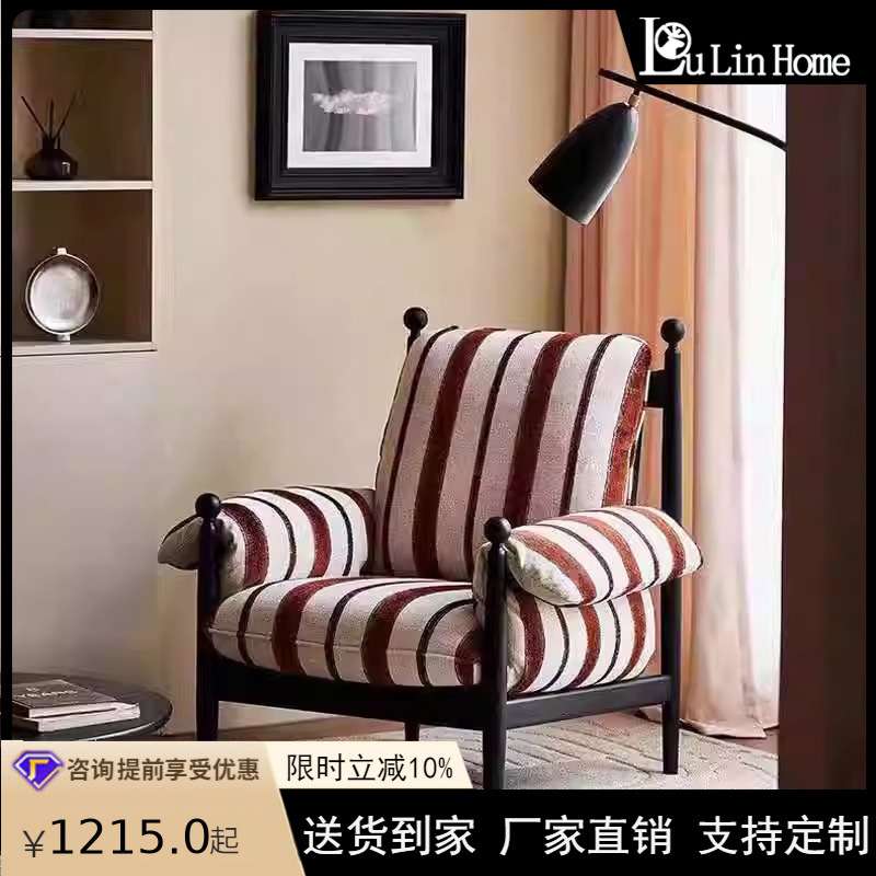 法式复古赤乌休闲椅客厅阳台设计师靠背单人沙发椅中古风懒人单椅
