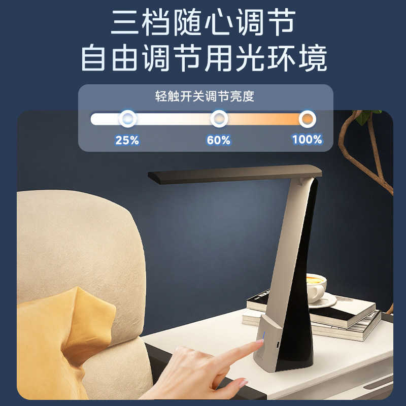 美的学习台灯学生宿舍充电LED阅读灯卧室书桌可折叠便携超长续航