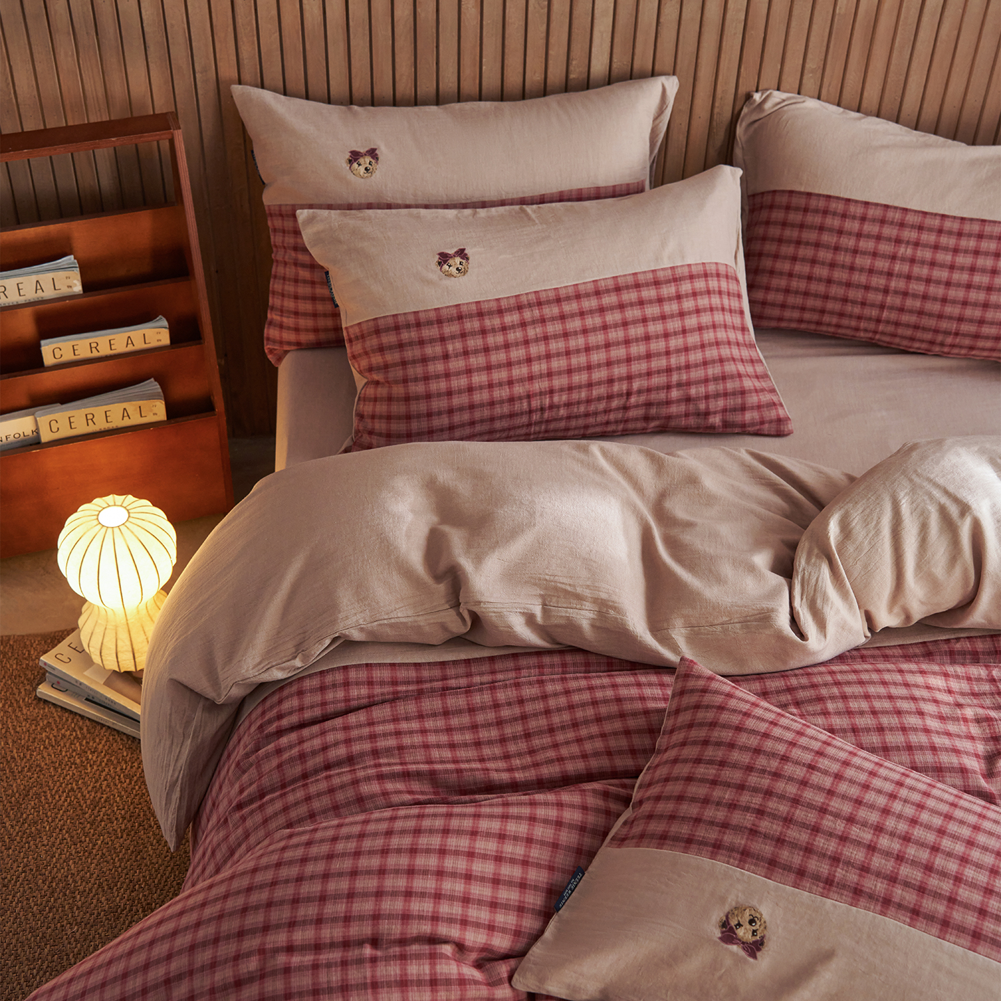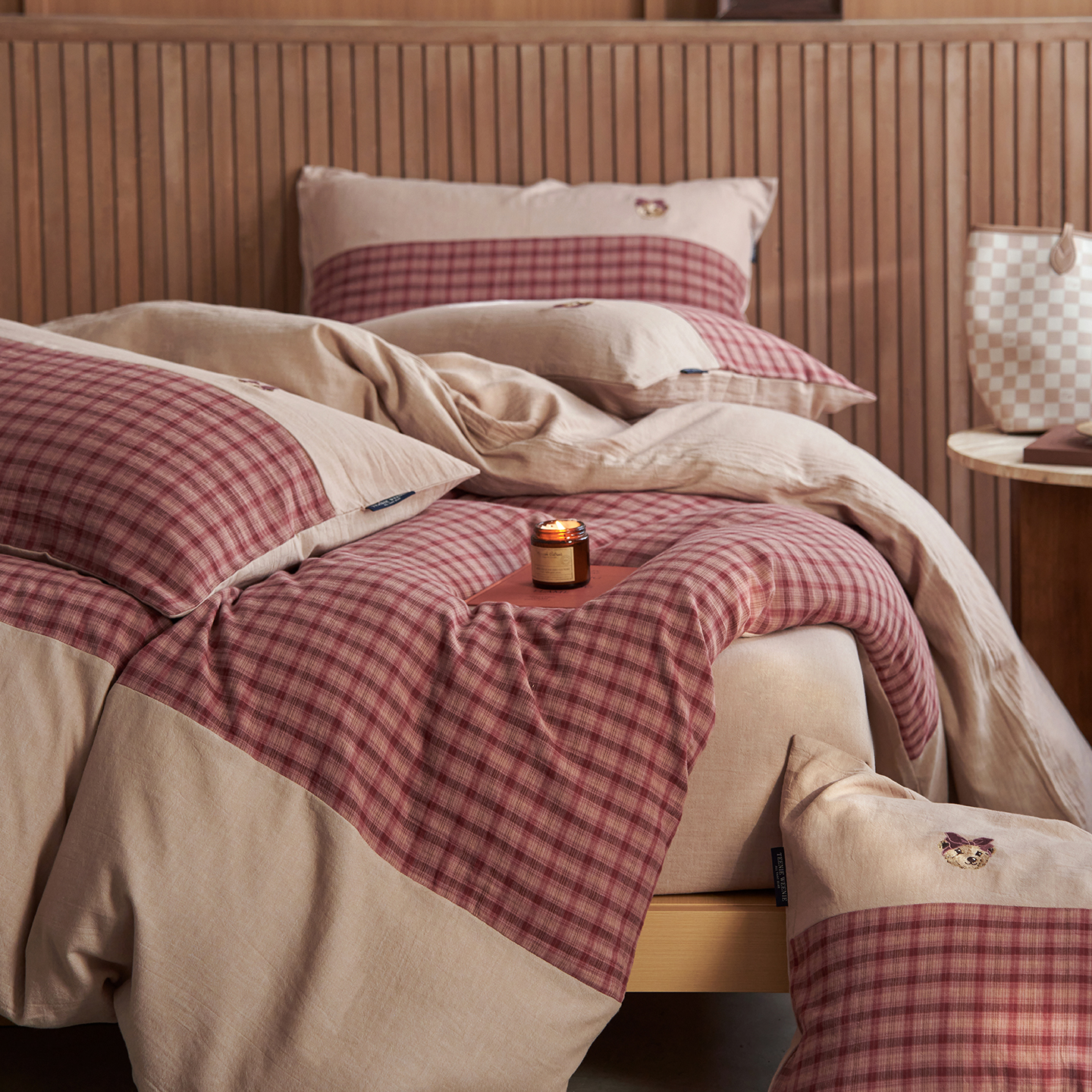 TeenieWeenie复古风格子全棉双层纱四件套纯棉被套床单床笠款1.8m