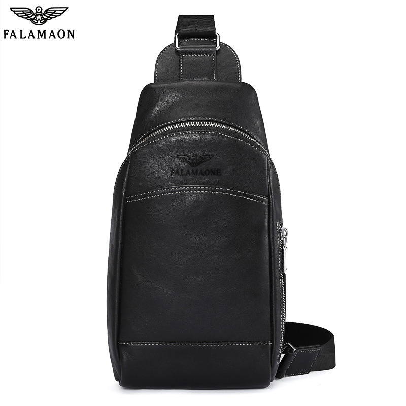法莱阿玛尼真皮胸包男单肩斜挎包时尚休闲胸前商务背包头层牛皮