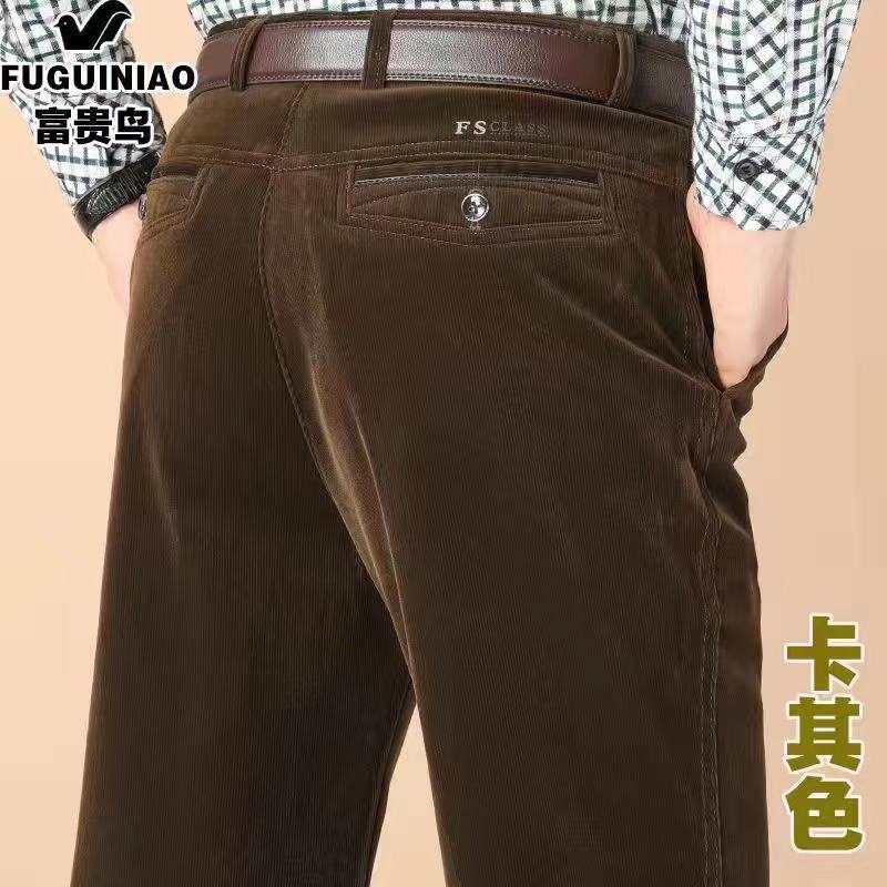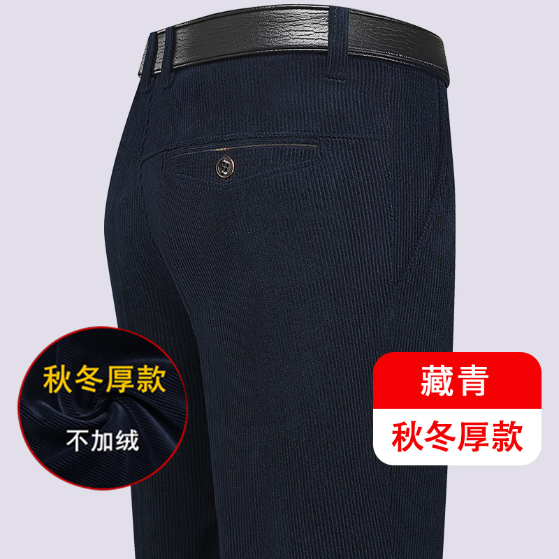 秋冬季灯芯绒男裤爸爸裤子加绒加厚中年男士休闲裤中老年人条绒裤