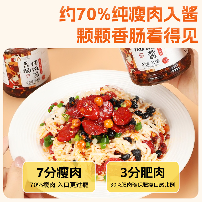 三知情香辣腊肠拌饭酱风味湖南农家下饭菜香肠拌饭酱216g瓶装即食