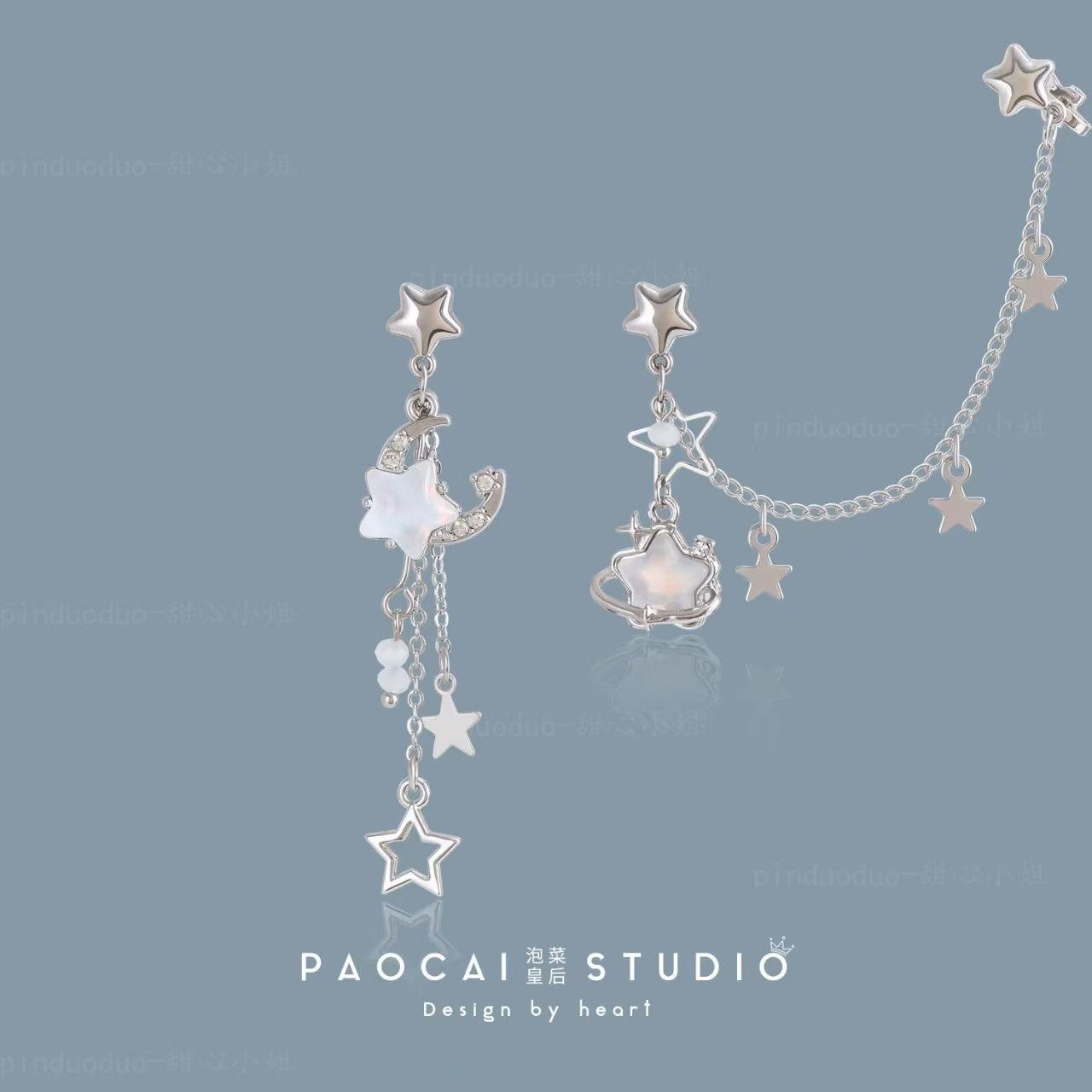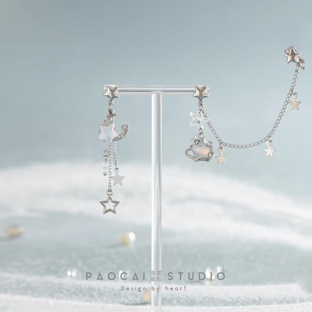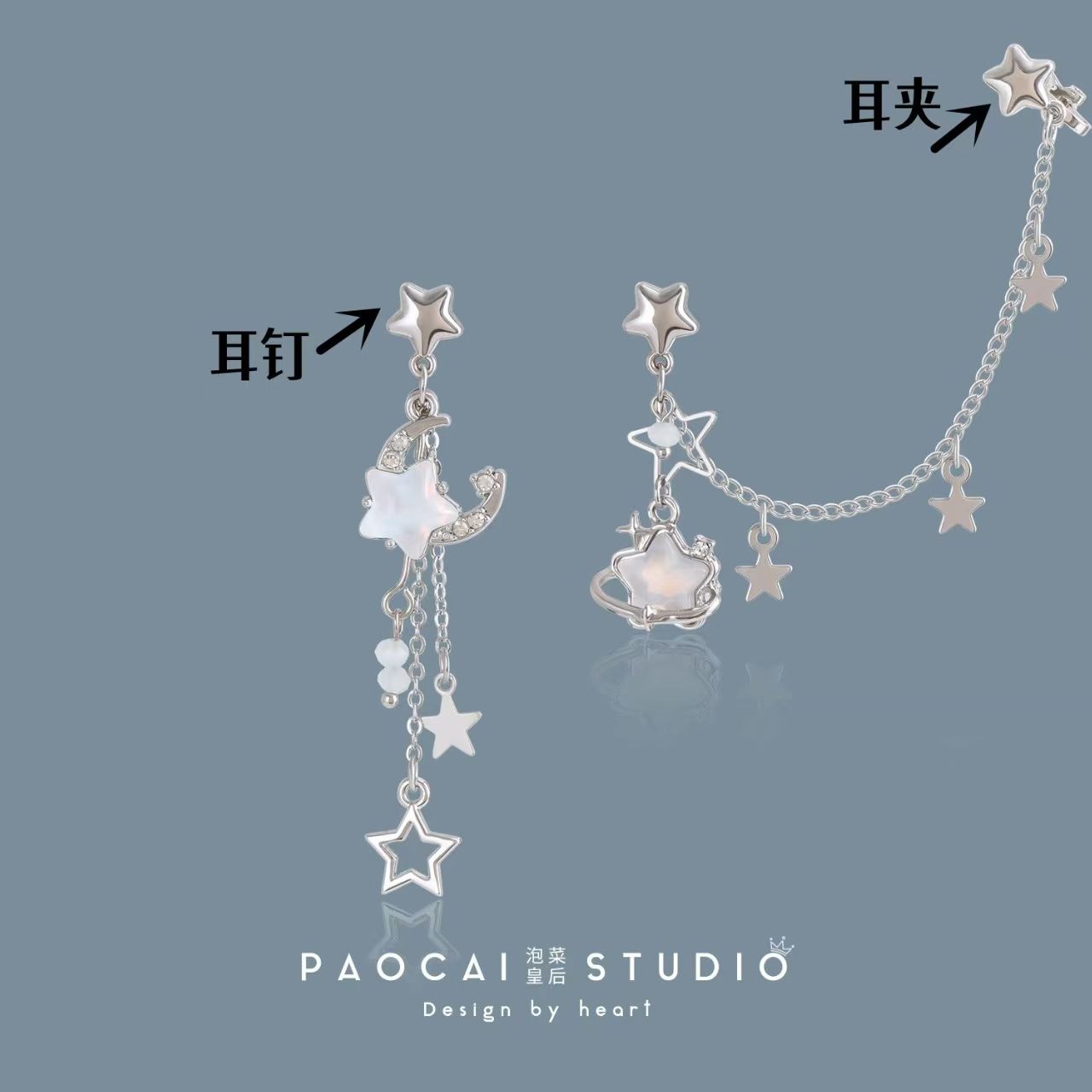 小众 原创不对称星星耳钉甜酷辣妹耳骨夹披星戴月设计高级感耳环