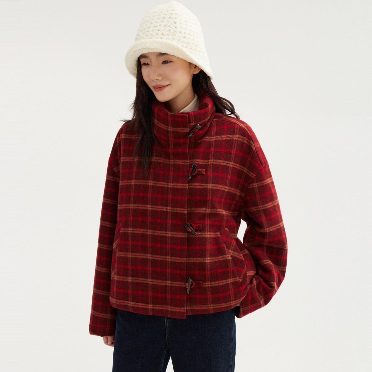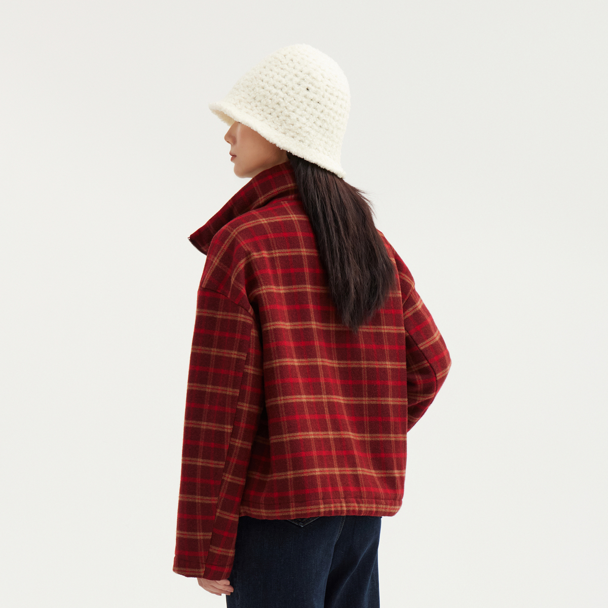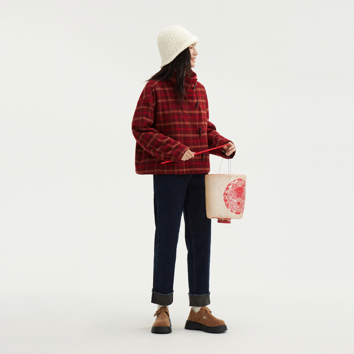 飞鸟和新酒格纹短款棉衣女时尚女装小个子夹棉新年战袍外套