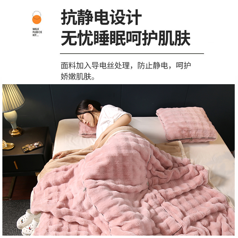 加厚纯色保暖兔绒k抱枕毯子二合一汽车载靠垫枕被子两用午睡空调