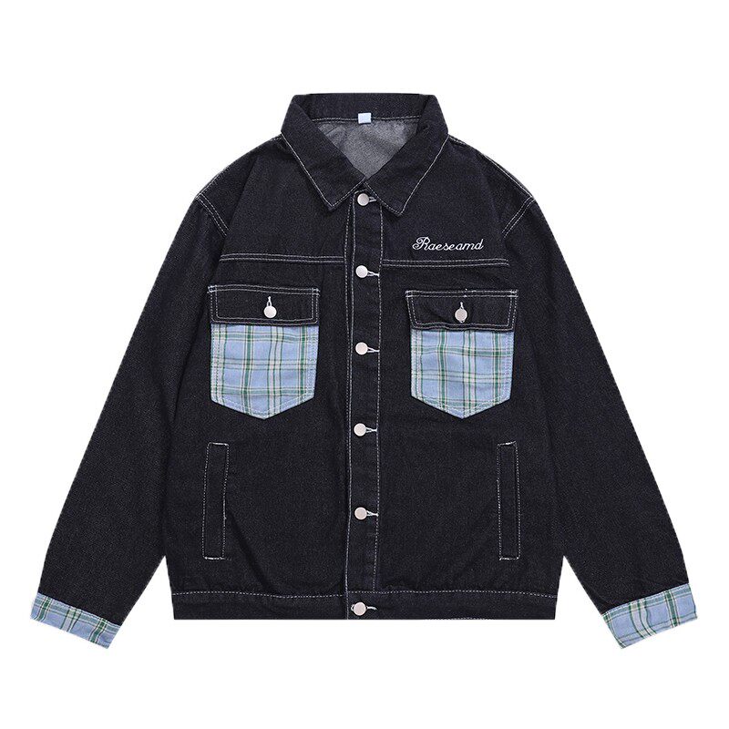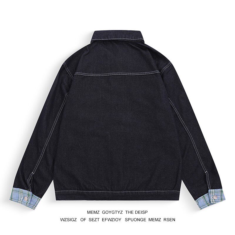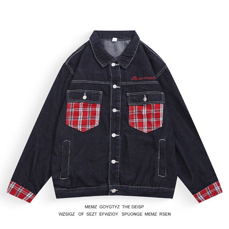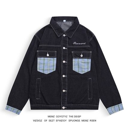 格子拼接牛仔外套男女春秋季夹克