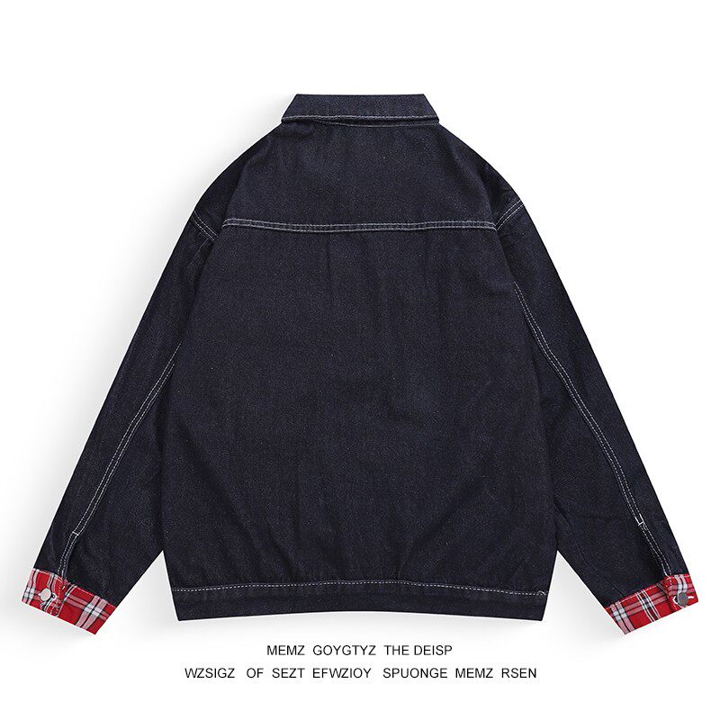 美式高街格子拼接设计感牛仔外套男女春秋季情侣复古水洗工装夹克