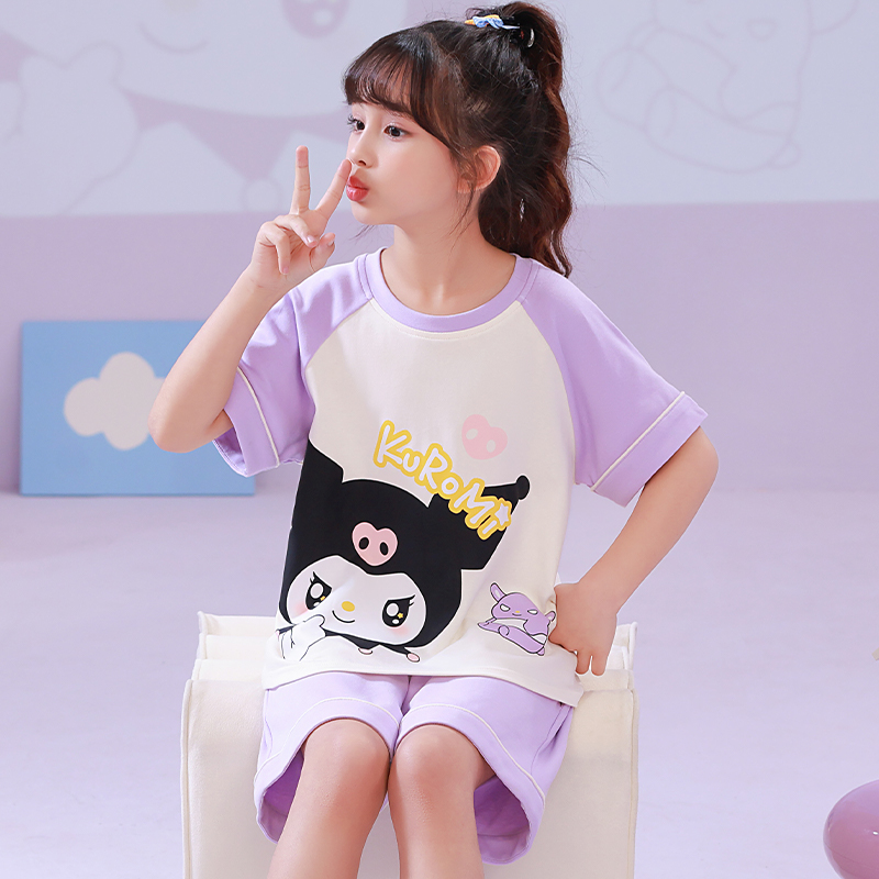 儿童睡衣女童夏季短袖薄款棉质中大童卡通白雪公主女孩套装家居服