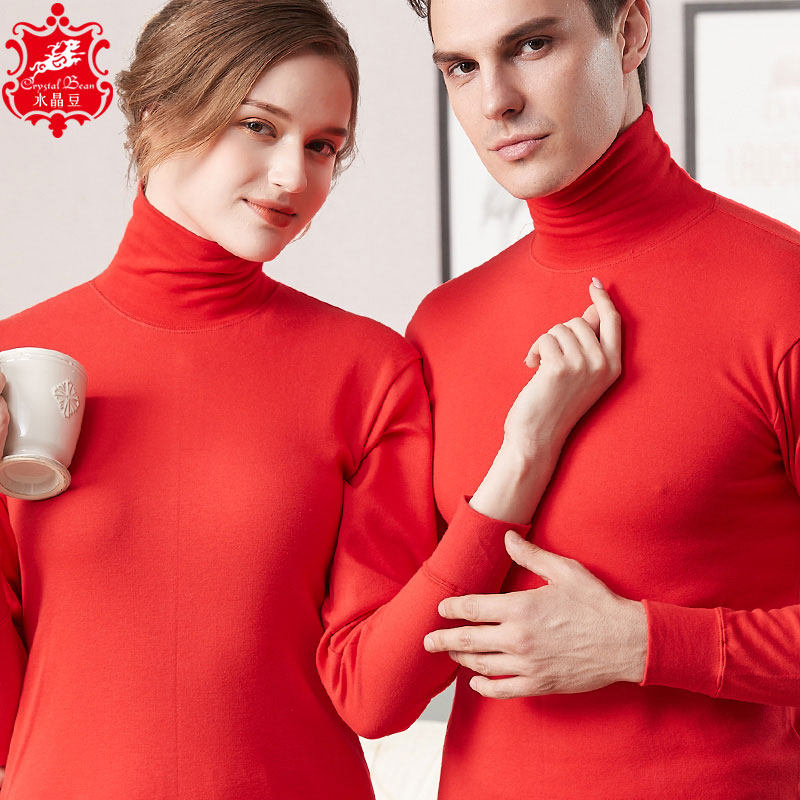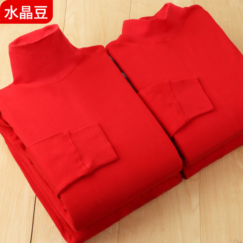 本命年内衣套装男女保暖衣老人纯棉中老年秋衣秋裤大红色高领全棉