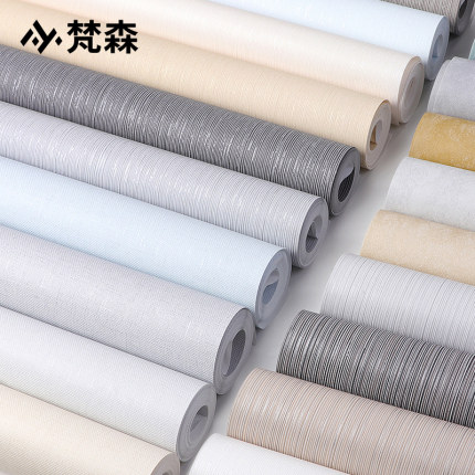 非自粘墙纸无纺布纯色条纹灰色壁纸店铺装修卧室亚麻布纹工程刷胶