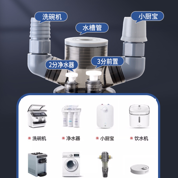潜水艇厨房下水管三头通下水三通分流器多功能水槽接头防返臭神器