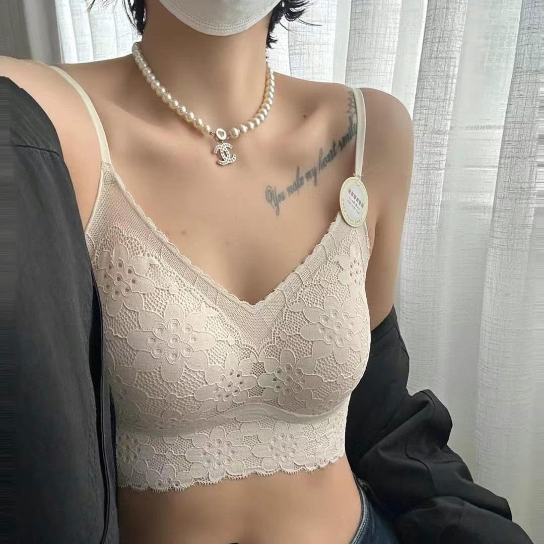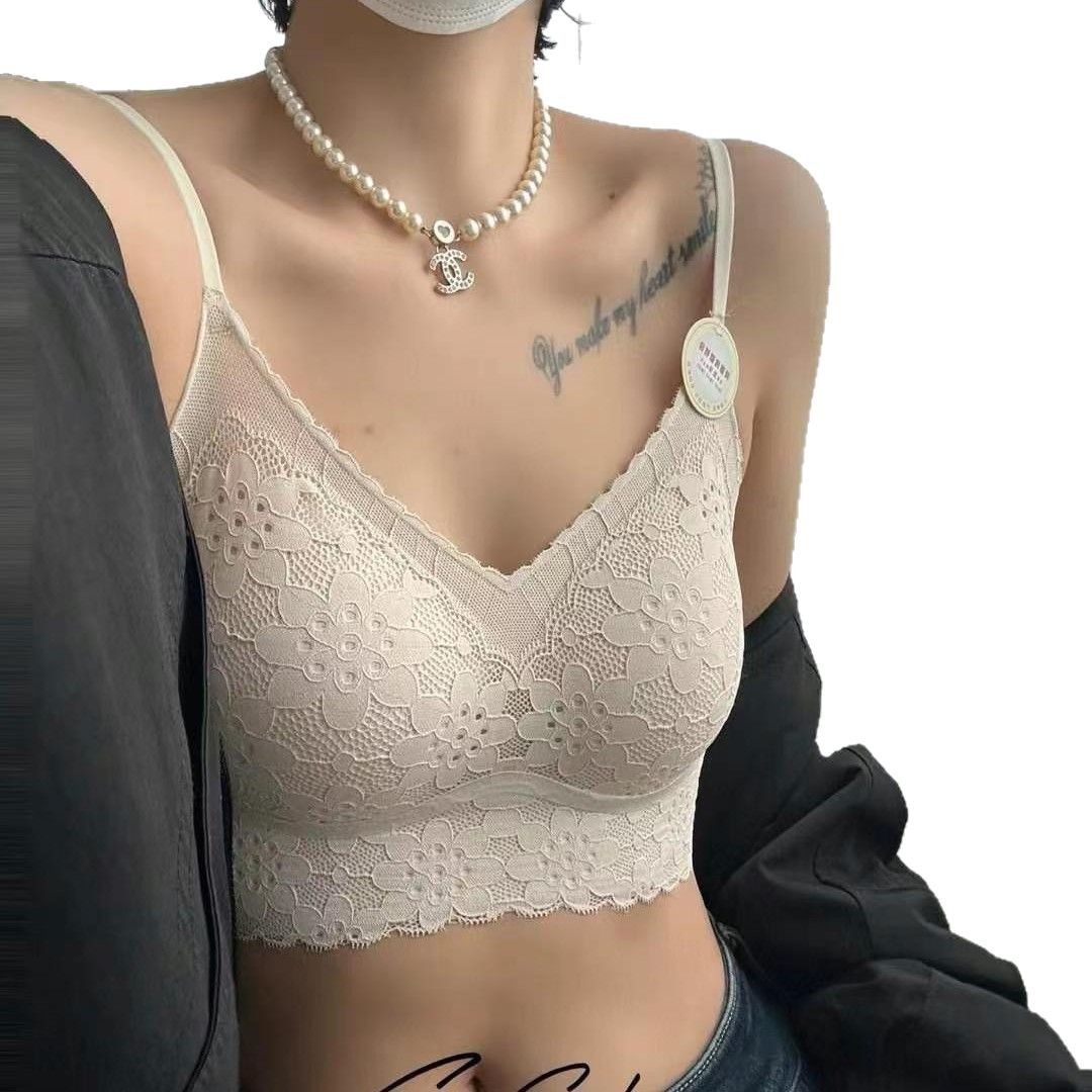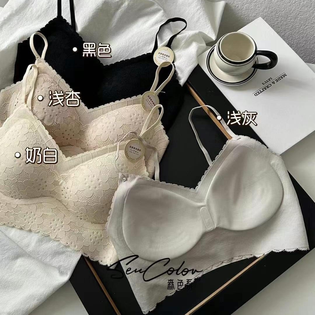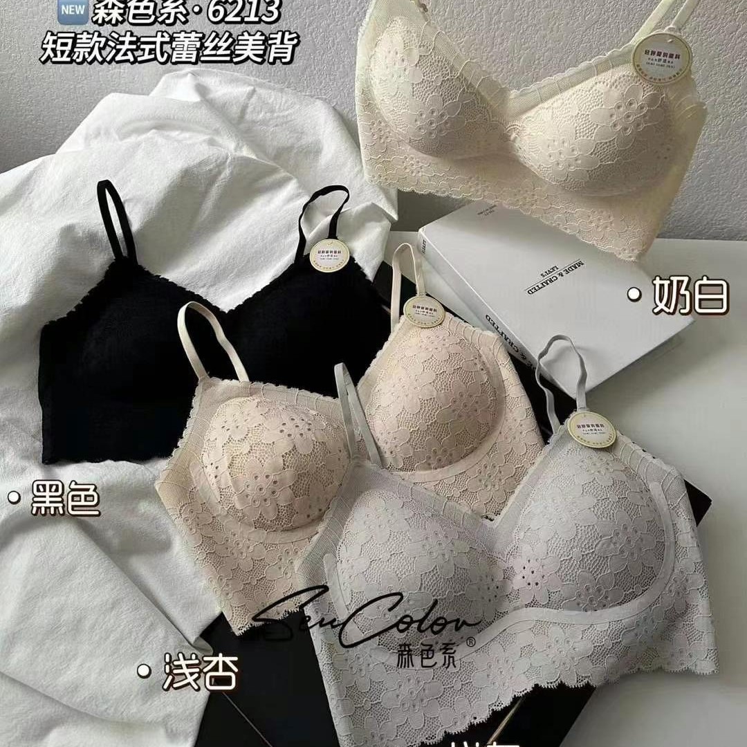 森色系小胸聚拢薄杯立体蕾丝花吊带美背文胸打底内衣乳胶垫6213-1