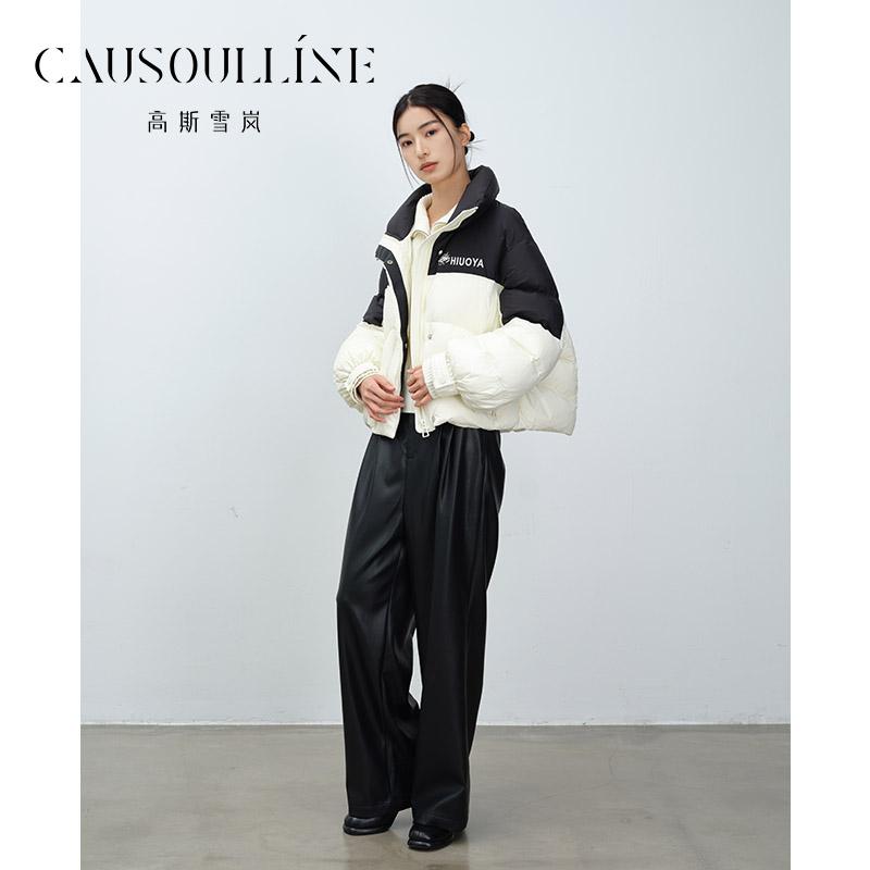 高斯雪岚冬新款拼色韩版白鹅绒羽绒服小个子短外套24418858 热卖