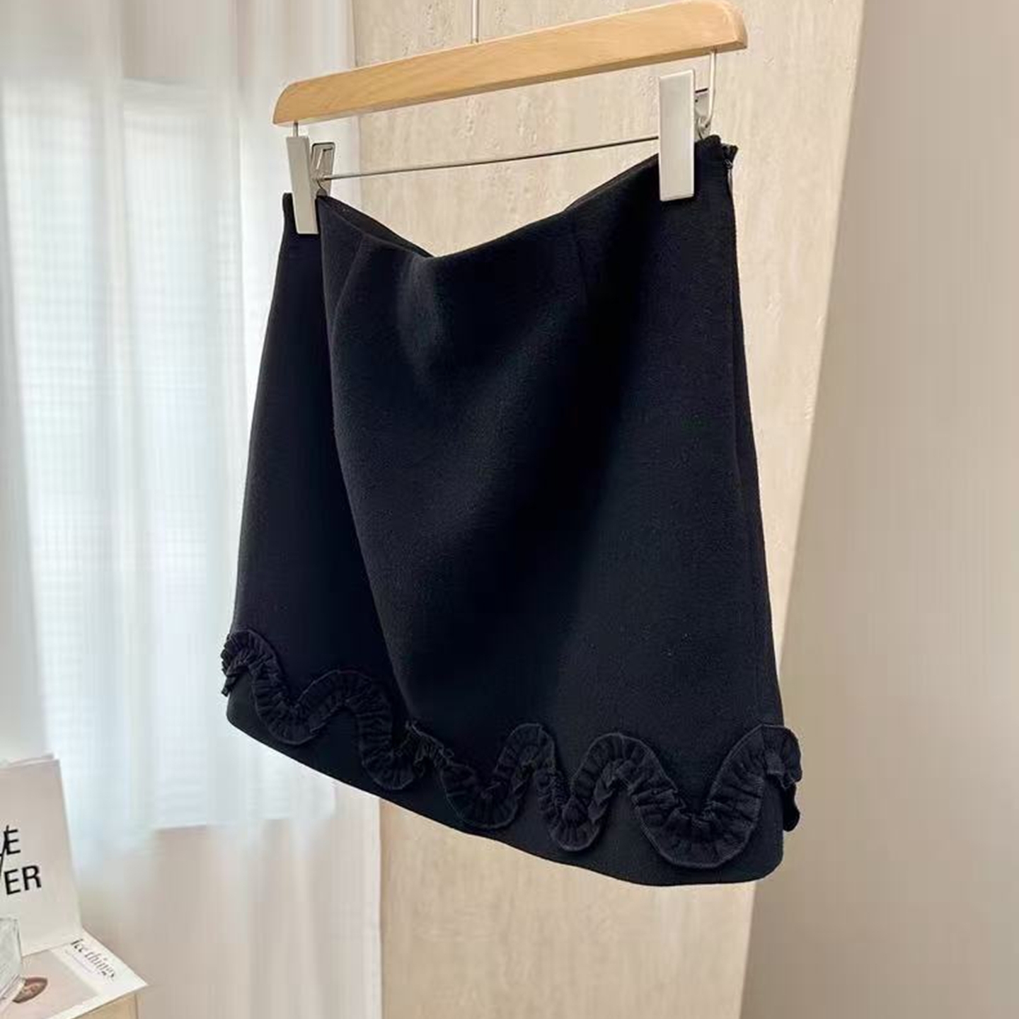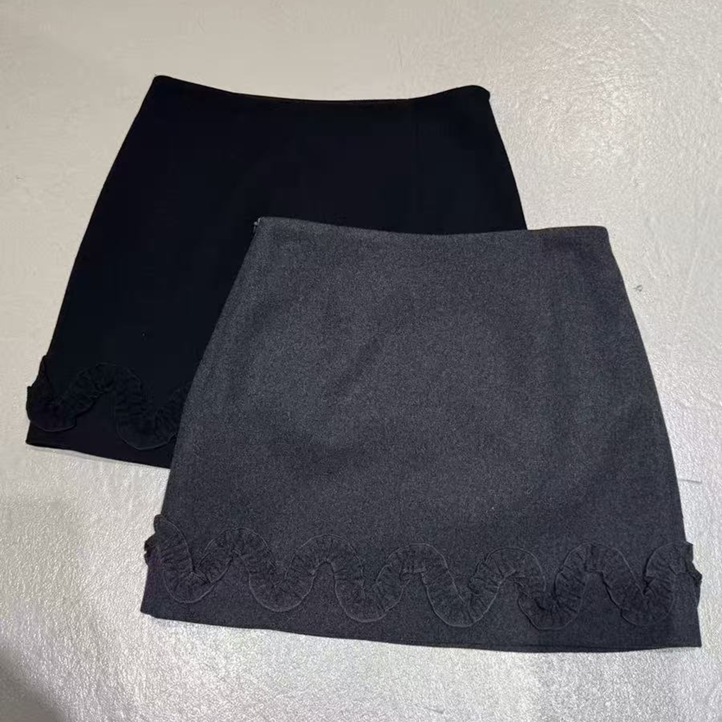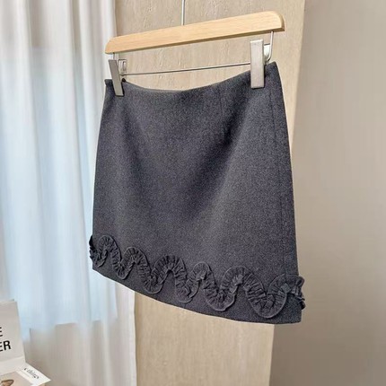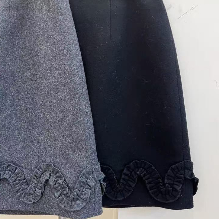 欧洲站羊毛下摆木耳边半身裙