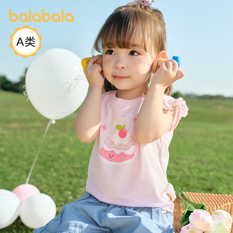 巴拉巴拉婴儿短袖T恤女童纯棉背心儿童宝宝上衣2025夏装新款童装t